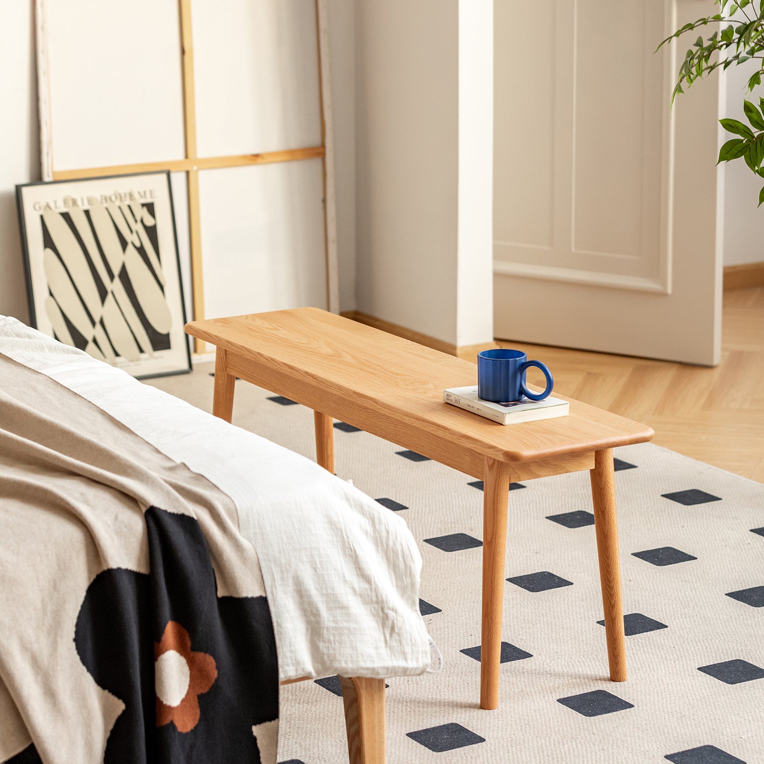 Crafted from FAS-grade North American oak, the bench displays a natural wood grain and enduring strength for daily comfort and timeless appeal. |
