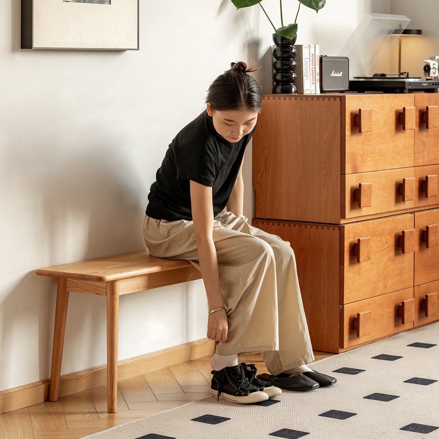 The 30 cm wide seat provides spacious comfort for dining, relaxing, or putting on shoes with ease. |