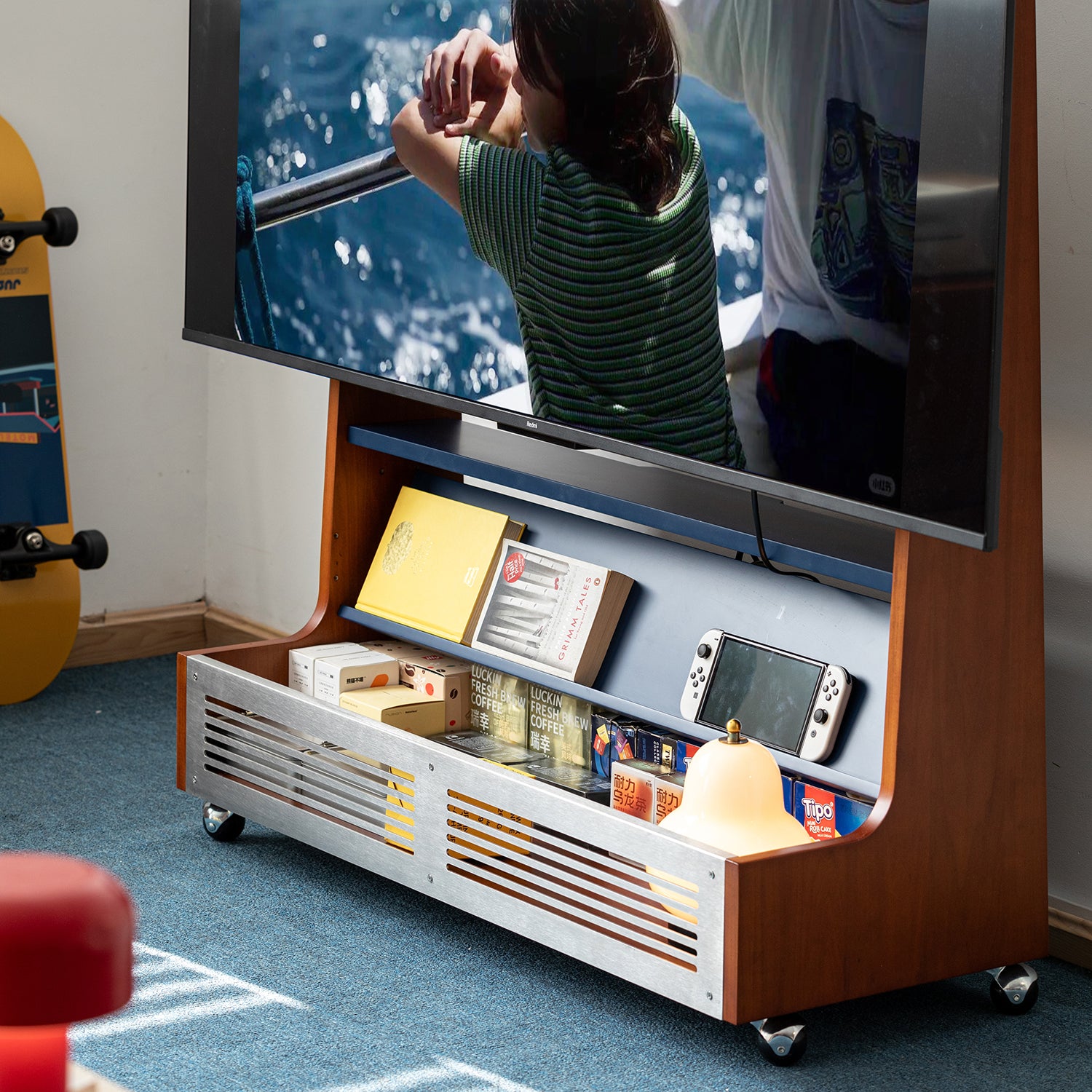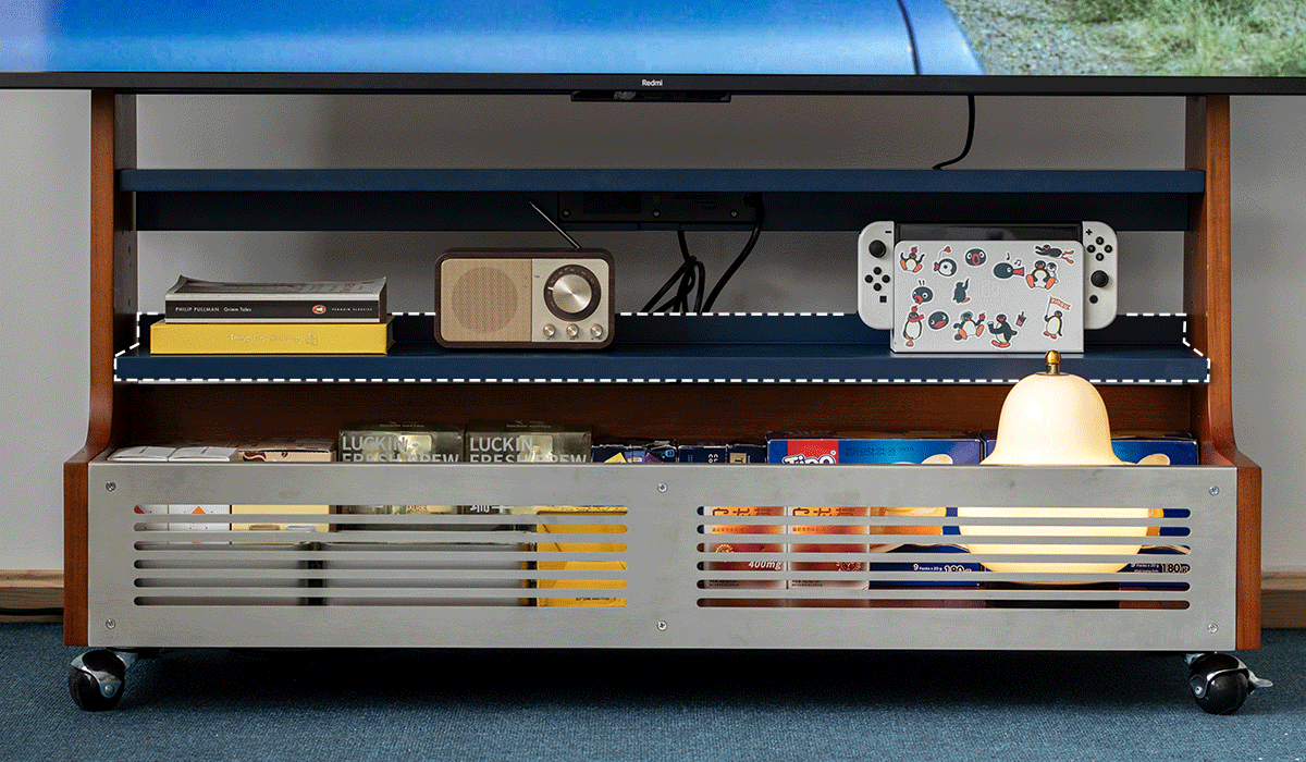 The integrated back panel provides space to neatly organise cables and small accessories, keeping wires out of sight for a clean and clutter free look.