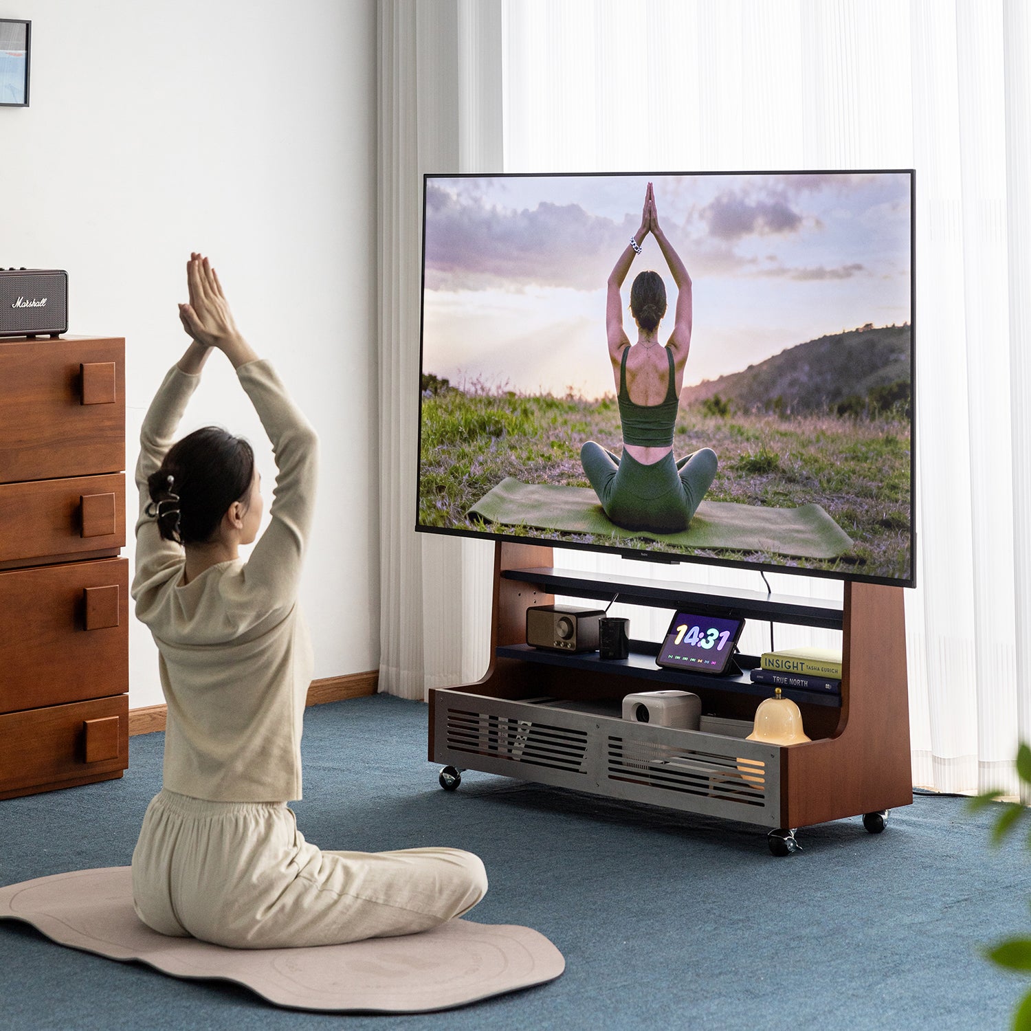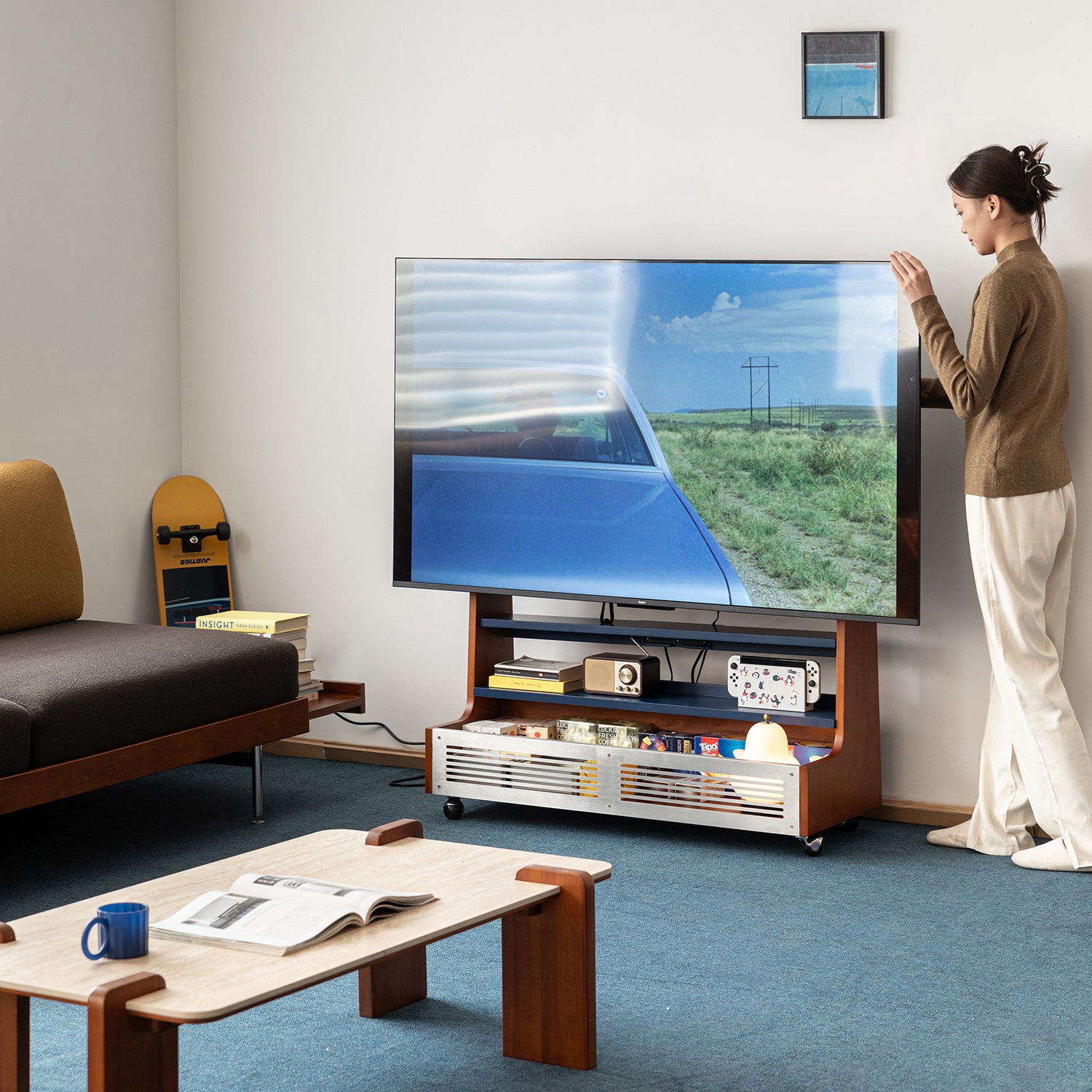 Vintage Boxwood TV Hanger MIES brings adjustable viewing height, hidden cable storage, and a space-saving design that keeps modern homes neat and visually balanced.