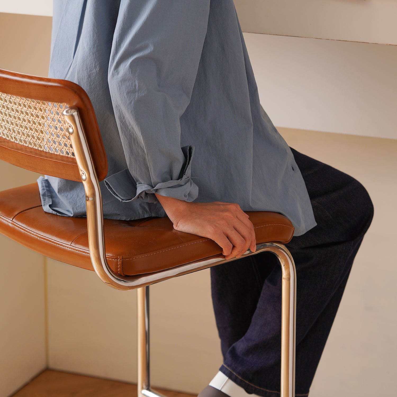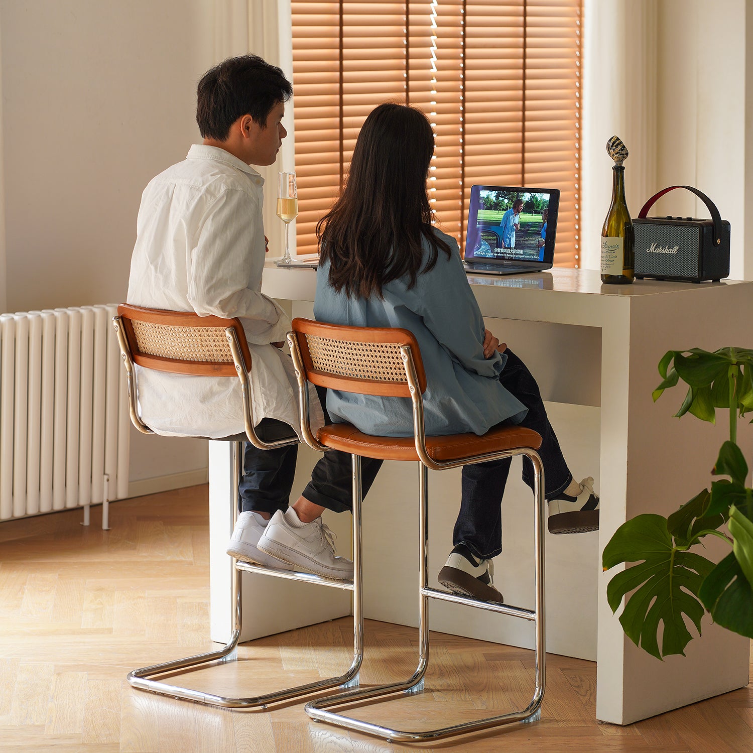 Vintage Rattan PU Leather Bar Chair HOH XIL brings a fresh vintage style with soft PU leather breathable rattan and a stable steel base perfect for bars and home dining