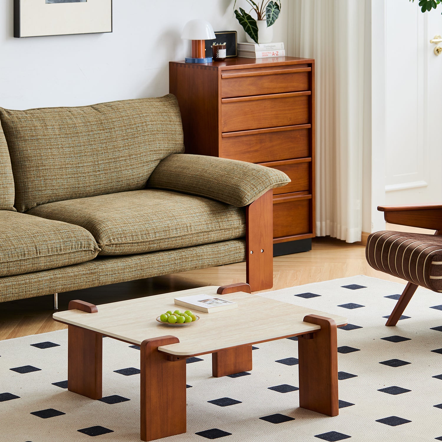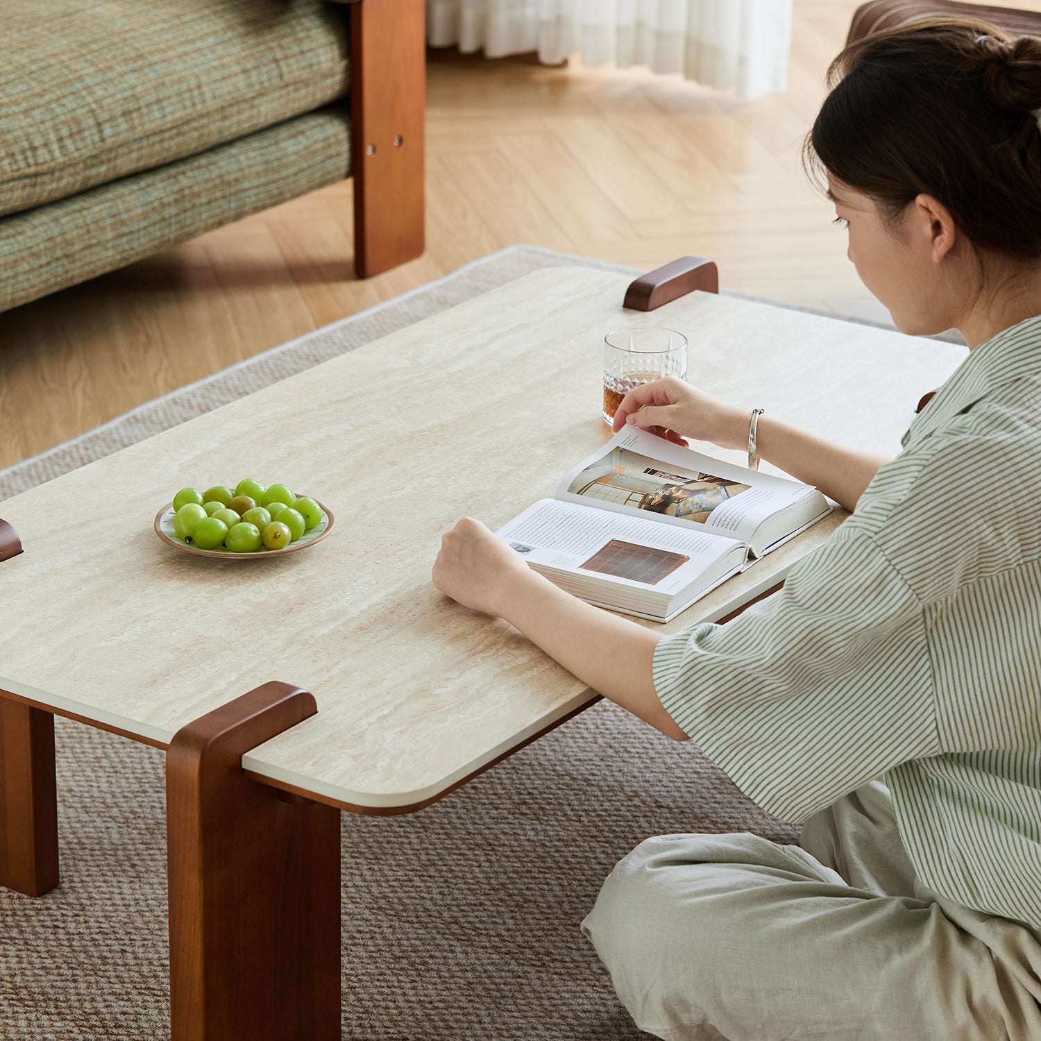 Vintage Sintered Stone Coffee Table ROMA blends Roman-inspired artistry with durable sintered stone and solid wood, offering timeless elegance and easy care.