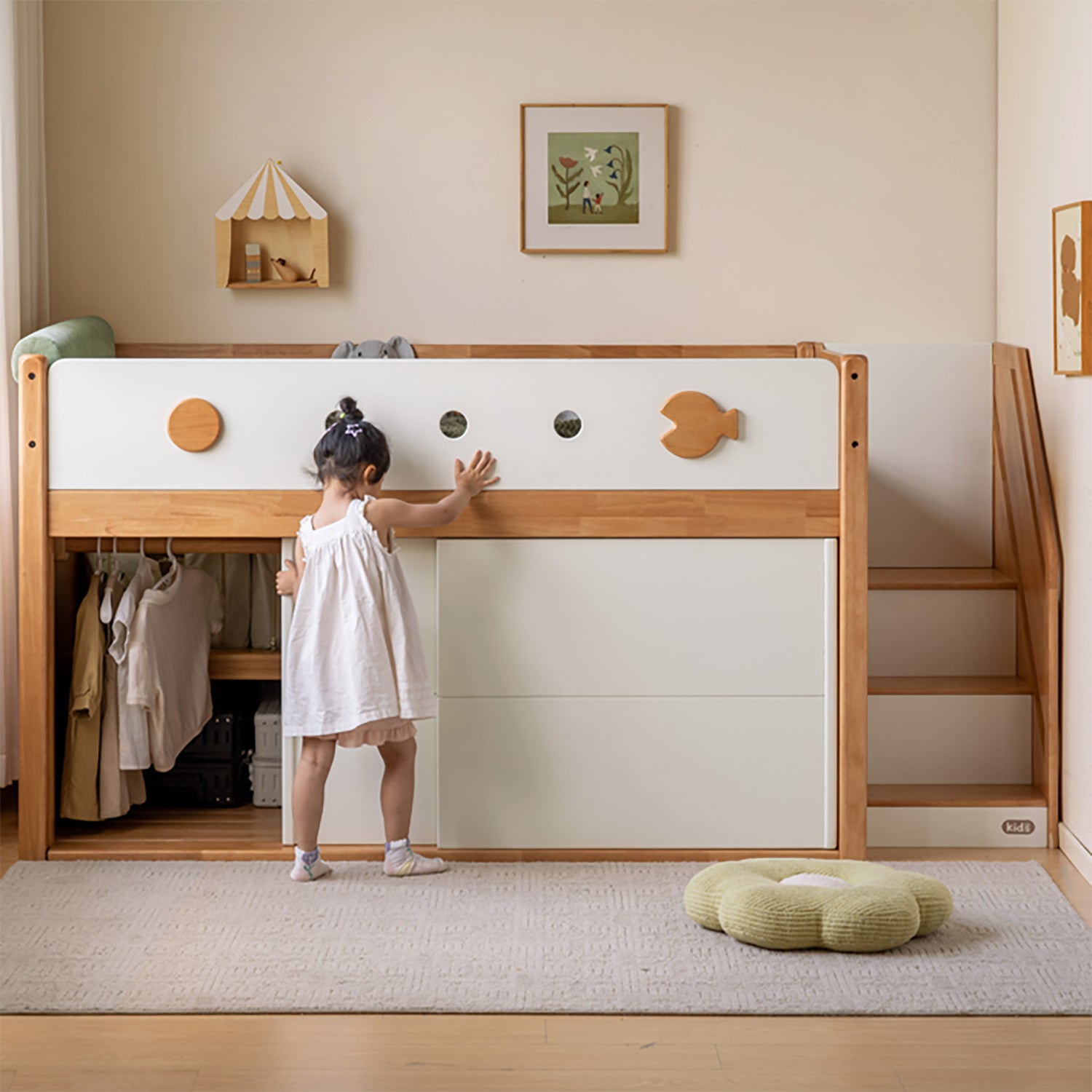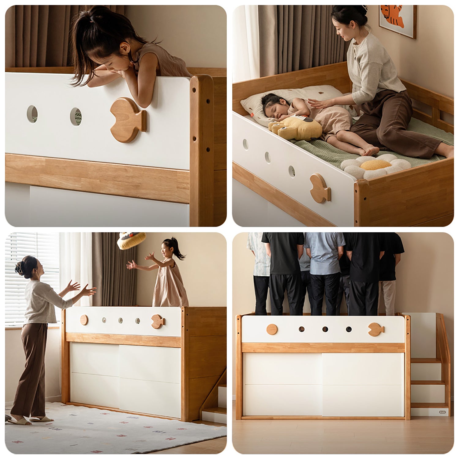 Scandinavian Rubber Wood Kids Storage Bed LUNOR