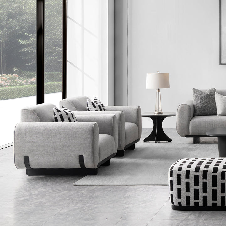 Modern mixed weave fabric 1 seater sofa griddy material variants.