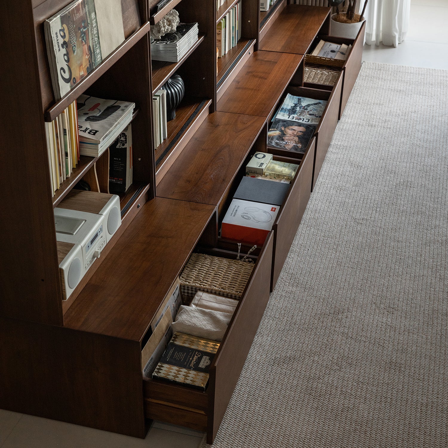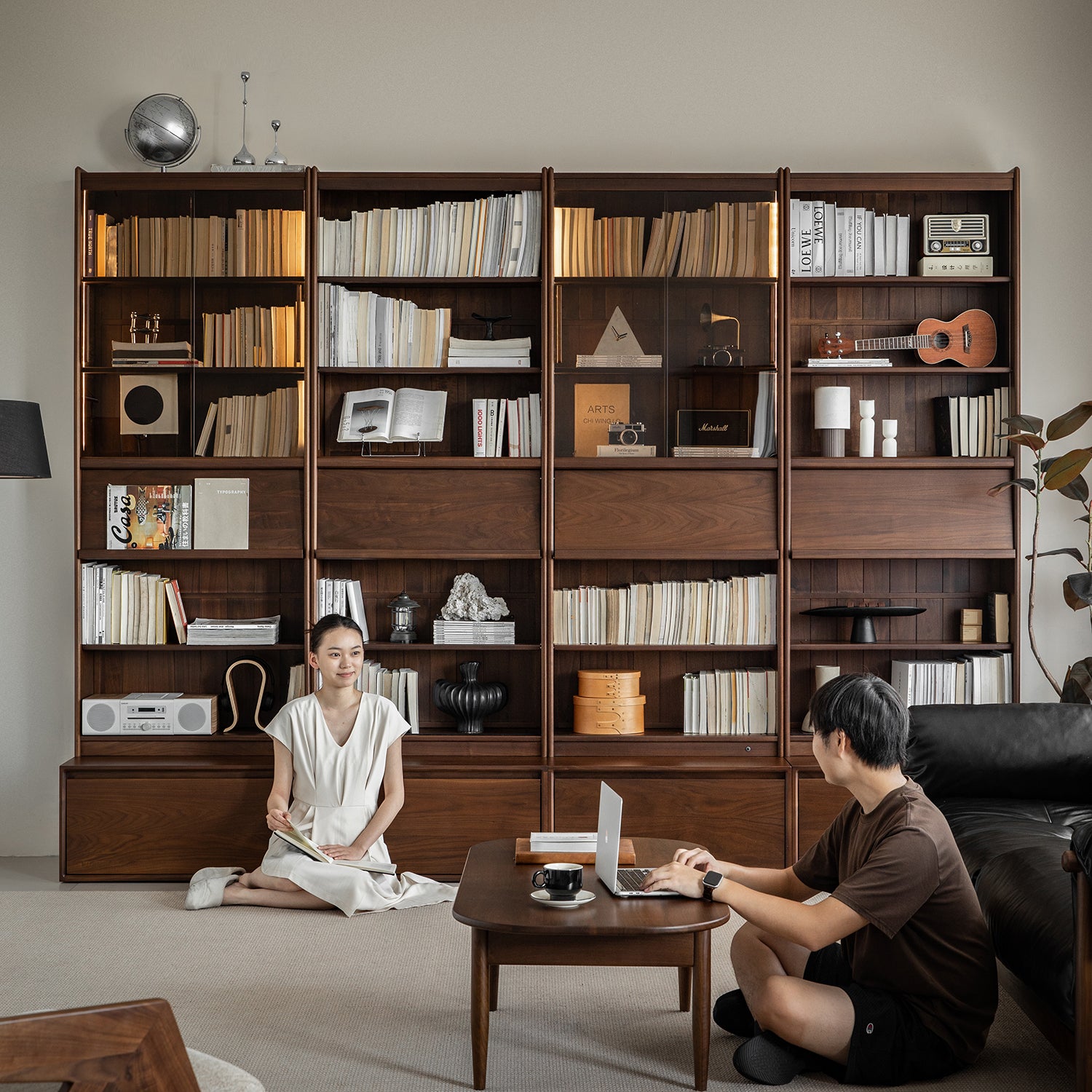 Japandi Walnut Wood Bookshelf VISTA offers rich walnut beauty strong solid wood quality and generous storage that keeps your books organized and your space elegant