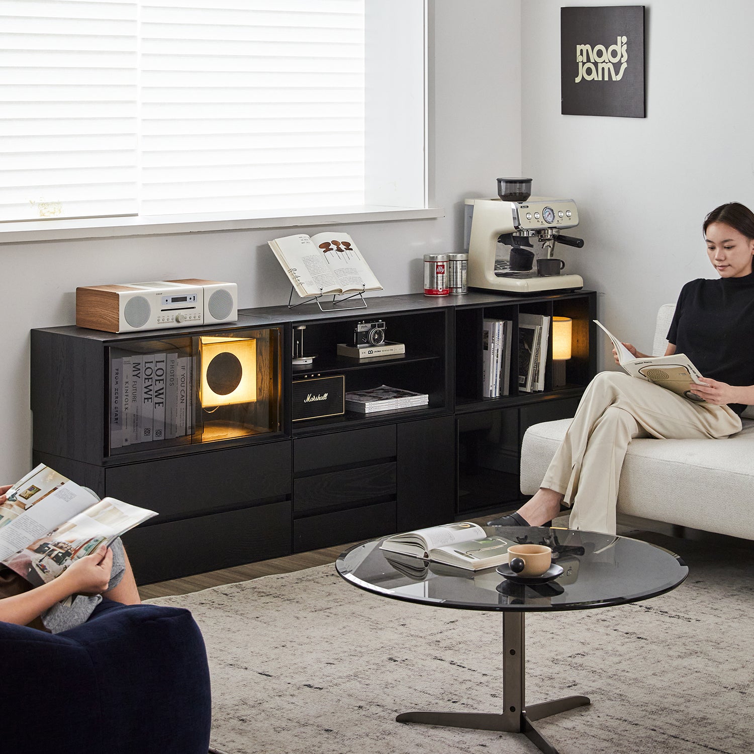 Open and closed compartments support display and concealed storage, helping you organize everyday items while keeping a clean visual balance.