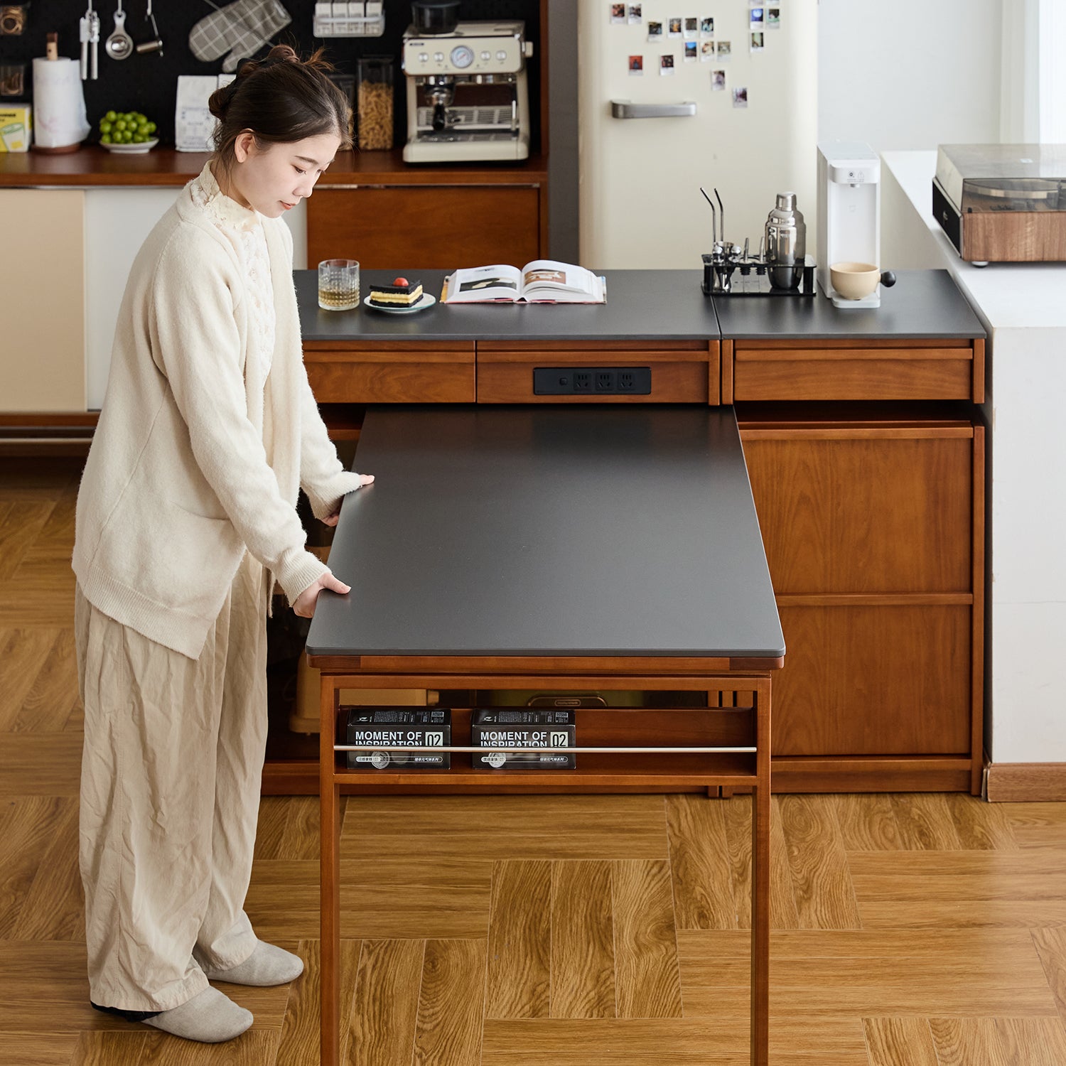 Vintage Boxwood Sintered Stone Extendable Island Dining Table With Cabinet SKELETAL