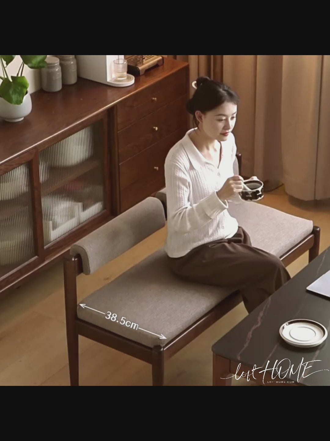 Scandinavian Oak Wood Mixed Weave Fabric Dining Bench PILLAR WALNUT