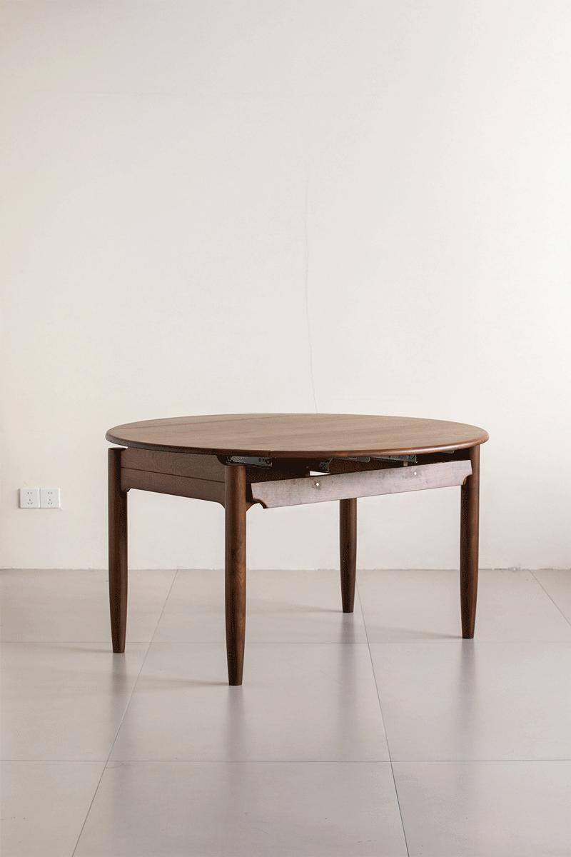 Japandi Walnut Wood Extendable Dining Table MINIMA transforms from daily family meals to big gatherings with ease, made from premium solid walnut for lasting beauty and stability