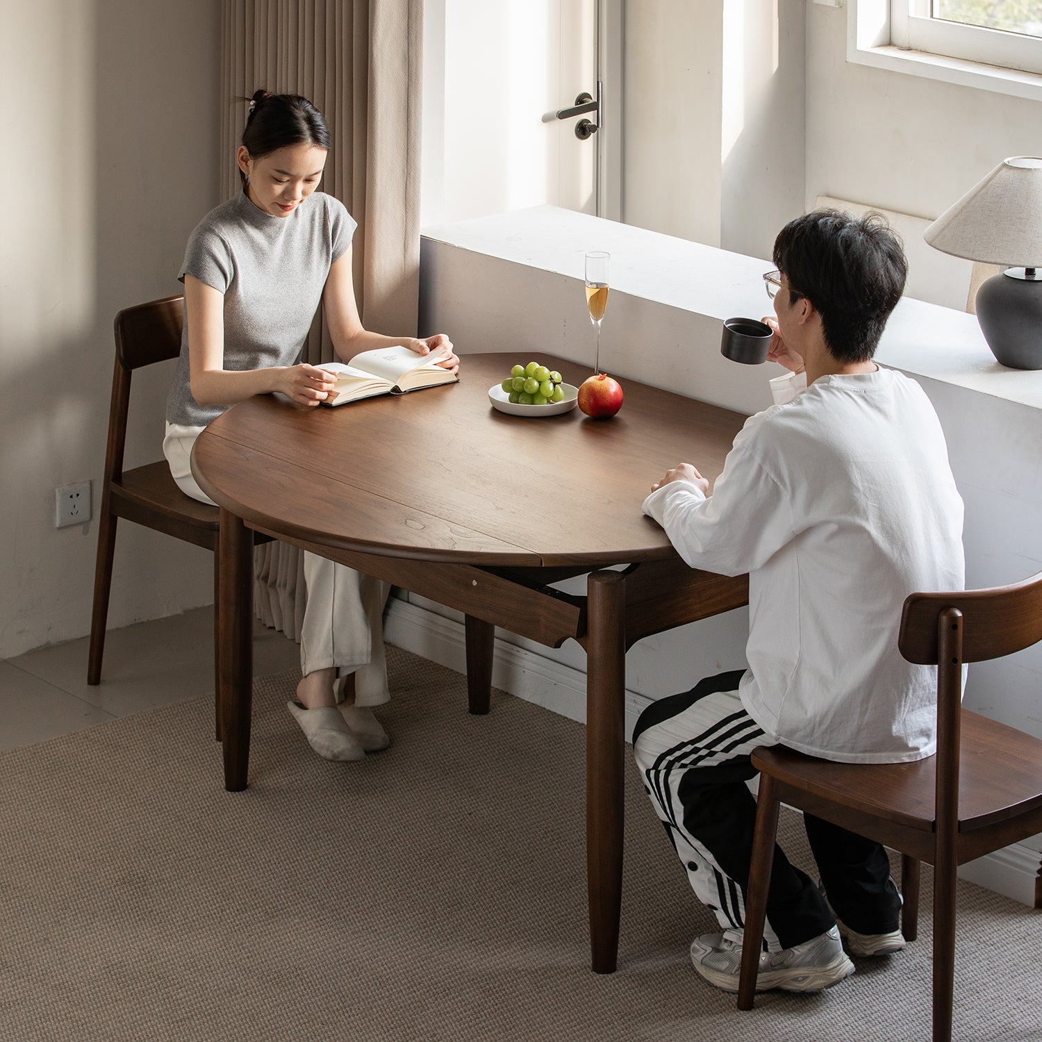 High quality walnut wood with beautiful natural grain brings warm character and a premium feel to your dining area