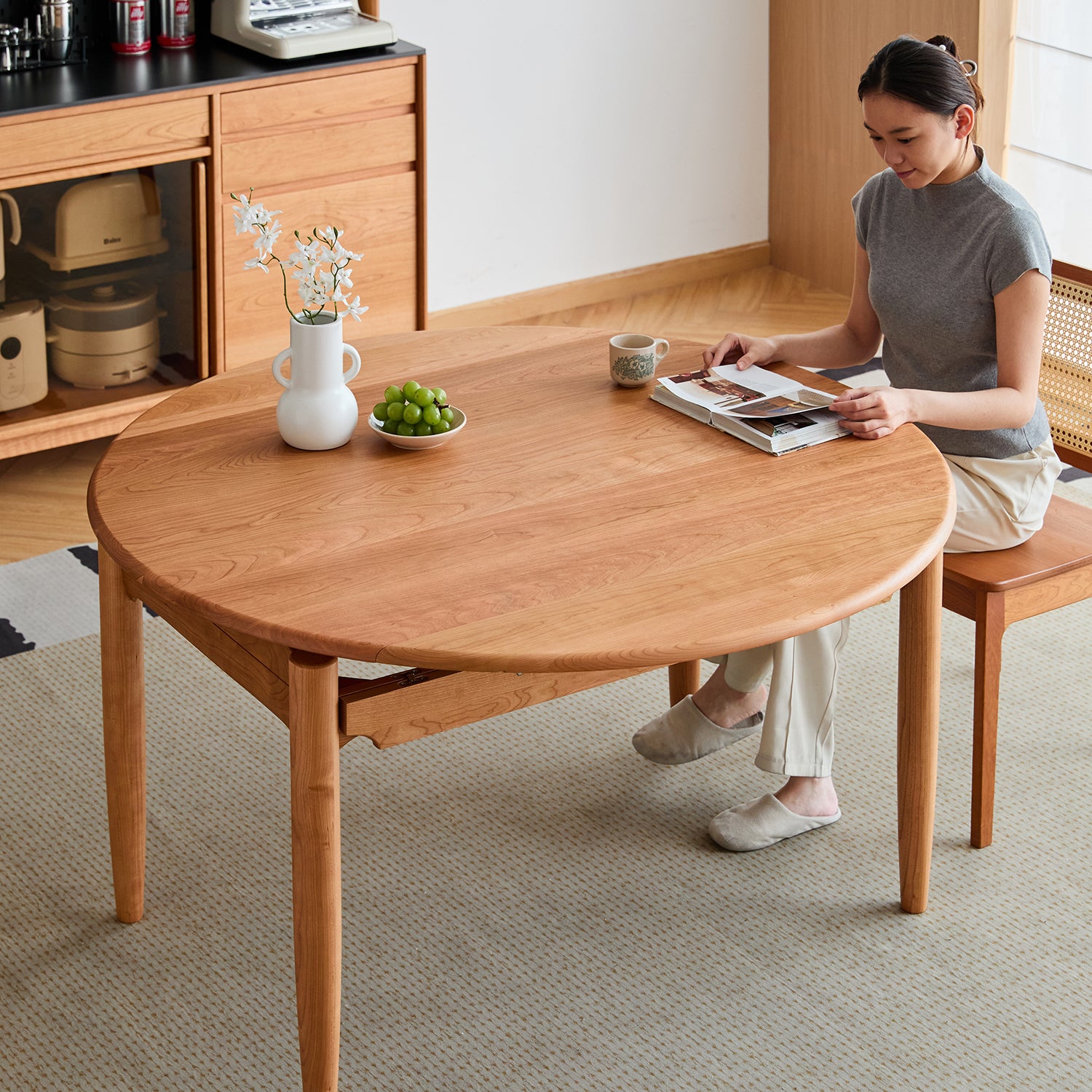 Scandinavian Cherry Wood Extendable Dining Table MINIMA brings timeless style to compact homes with a clever extendable design, solid cherry wood build, and warm Scandinavian elegance.
