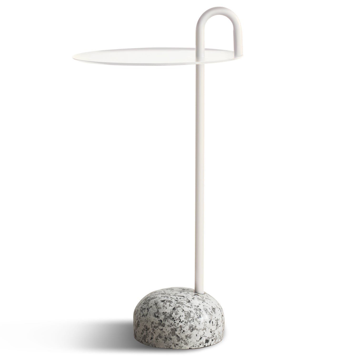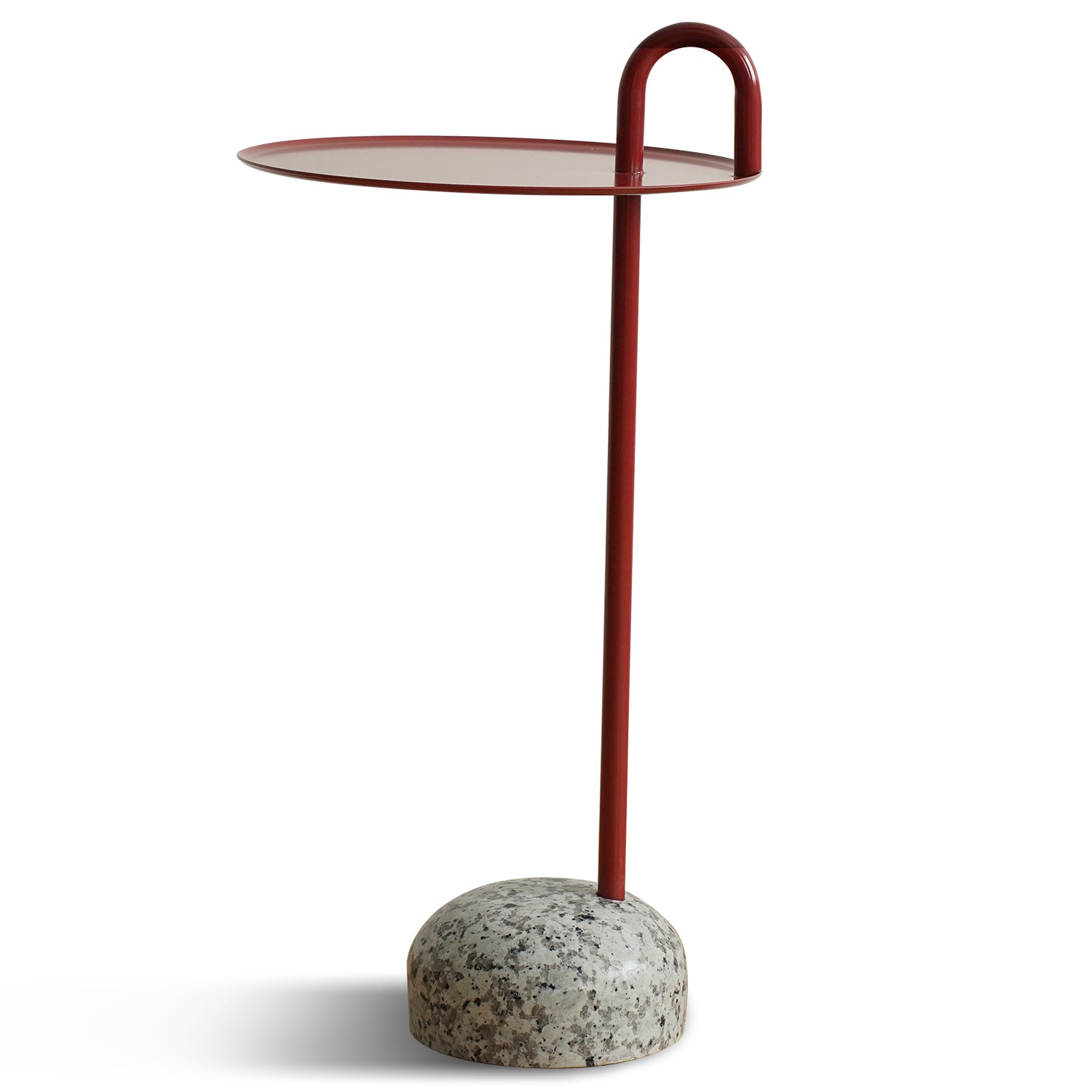 Minimalist steel marble side table loop material variants.