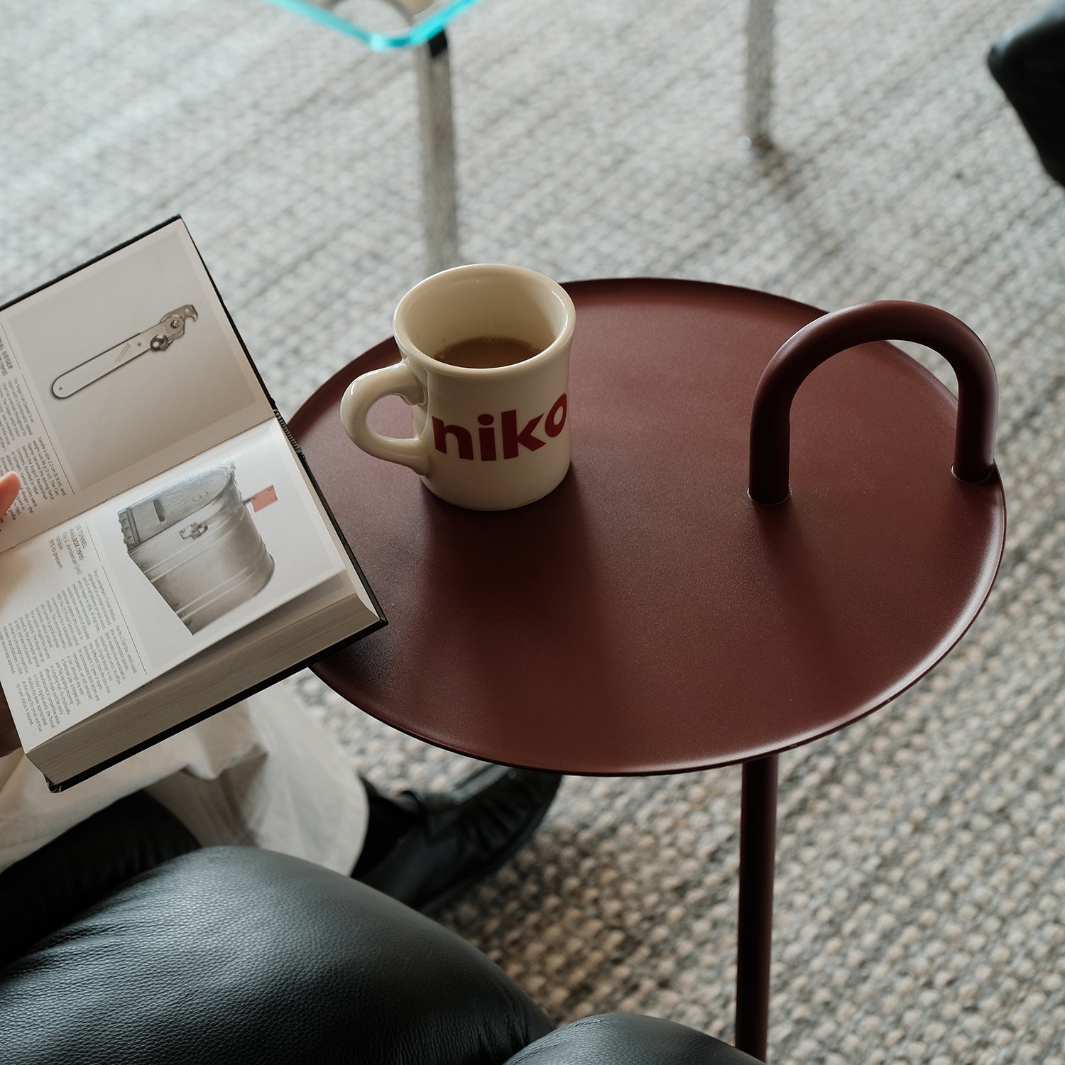 the curved handle lets you lift and move the table with ease so you can place it beside your sofa bed or workspace whenever you need an extra surface