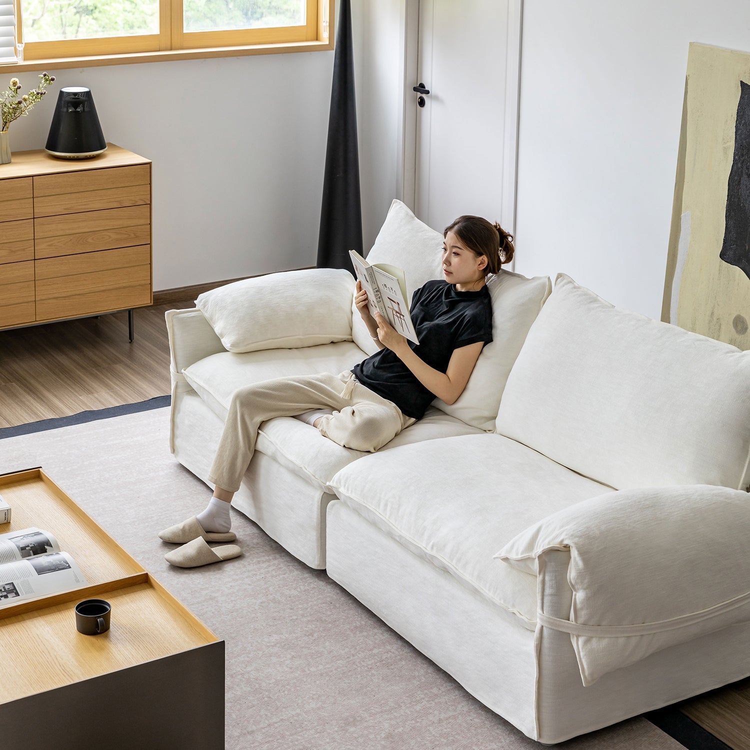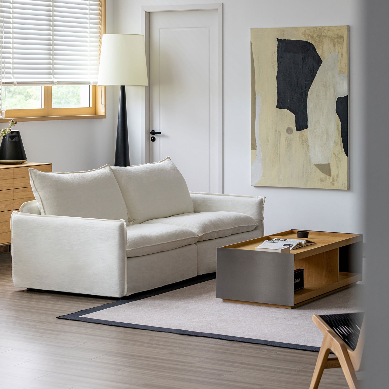 Soft curves meet serene comfort in Cream Cotton Fabric 2 Seater Sofa FOLDING EAR. Fully removable covers keep it fresh and perfect for everyday lounging.