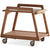 Japandi walnut wood wheeled trolley side table yoyo in white background.