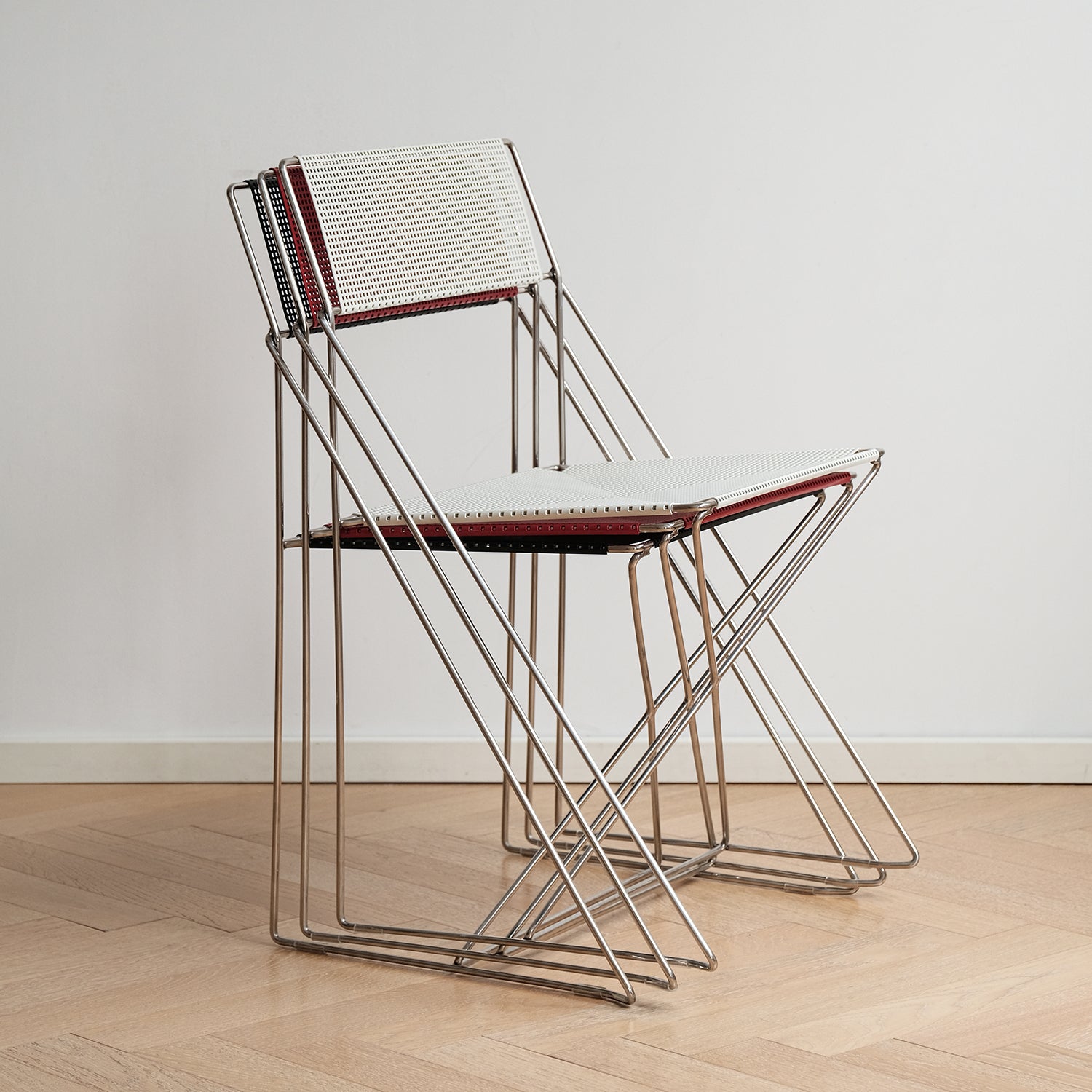 Minimalist Steel Dining Chair X LINE brings modern simplicity and strong comfort with a sturdy steel frame and airy seat design that fits perfectly in any space.