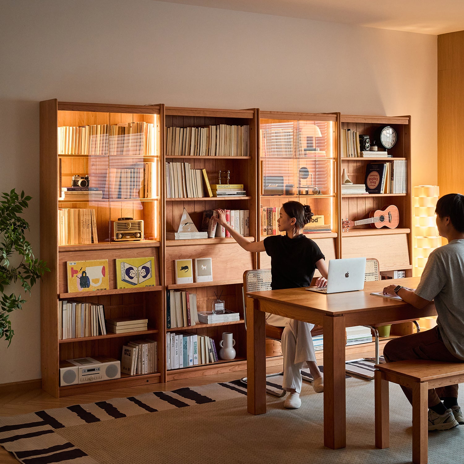 Scandinavian Cherry Wood Bookshelf VISTA presents elegant Scandinavian-style solid cherry wood craftsmanship and generous adjustable storage space for books of all sizes.