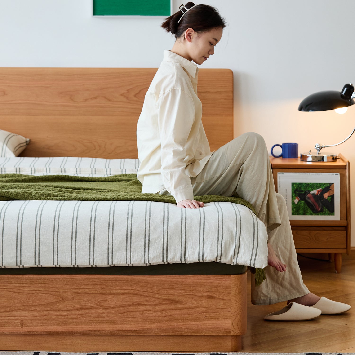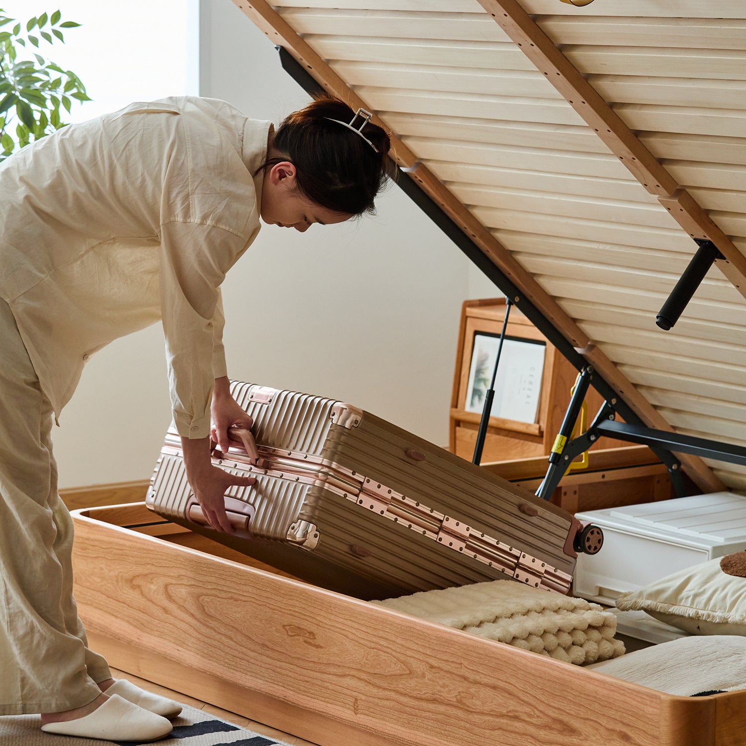 Scandinavian Cherry Wood Lift-Up Storage Bed SQUARE BOX