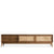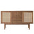 Feel the sensual beauty of exquisite box cane rattan weave on layer front of console. The rich walnut color of the legs and frame will make your living area seem cozier, more sophisticated. Apart from their practicality, the wooden sliding doors complement a modern design. available in two sizes to allow buyers to pick the one that best fits their space requirements.
