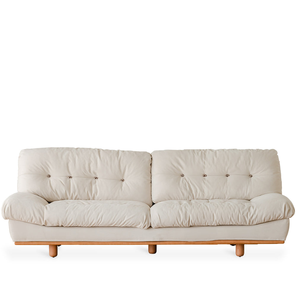 Cream Mixed Weave Fabric 3 Seater Sofa SWOOP blends elegant curves, resilient foam, and solid wood legs perfect for cozy, supportive, and stylish lounging.