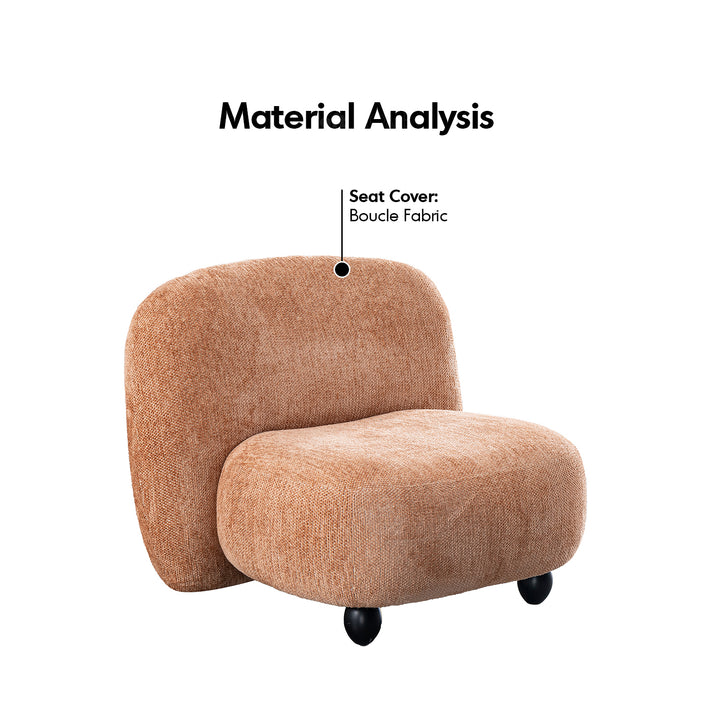 Brighten your space with the Cream Boucle Fabric 1 Seater Sofa MALT. Featuring a pinkish-orange tone and playful curves, it brings cozy charm to any modern interior.