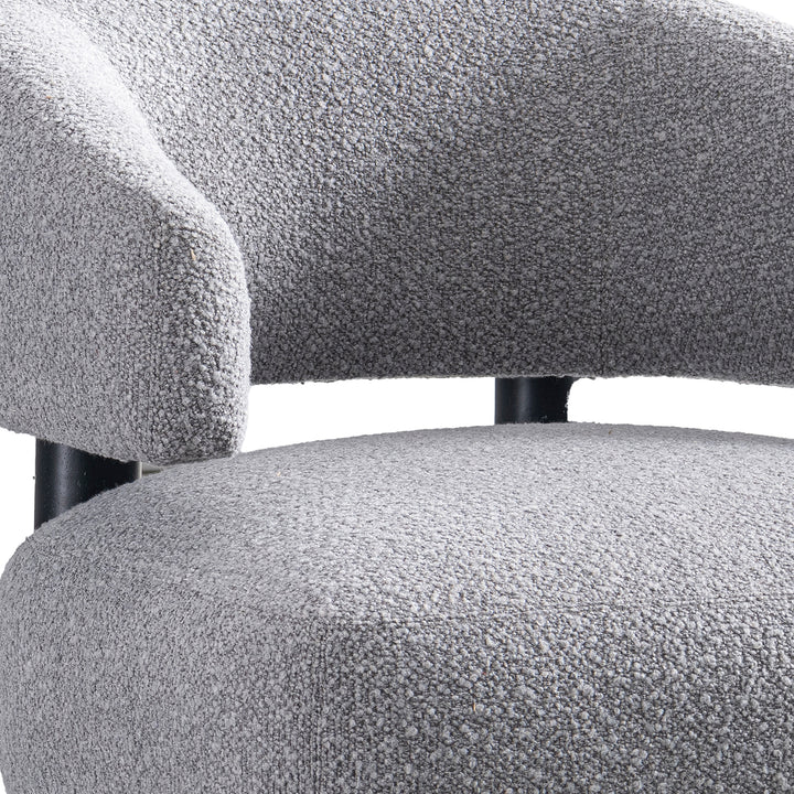 Modern Boucle Fabric 1 Seater Sofa MIROO combines soft texture with bold structure. Light gray seat, black legs, and ergonomic curves—perfect for stylish comfort.