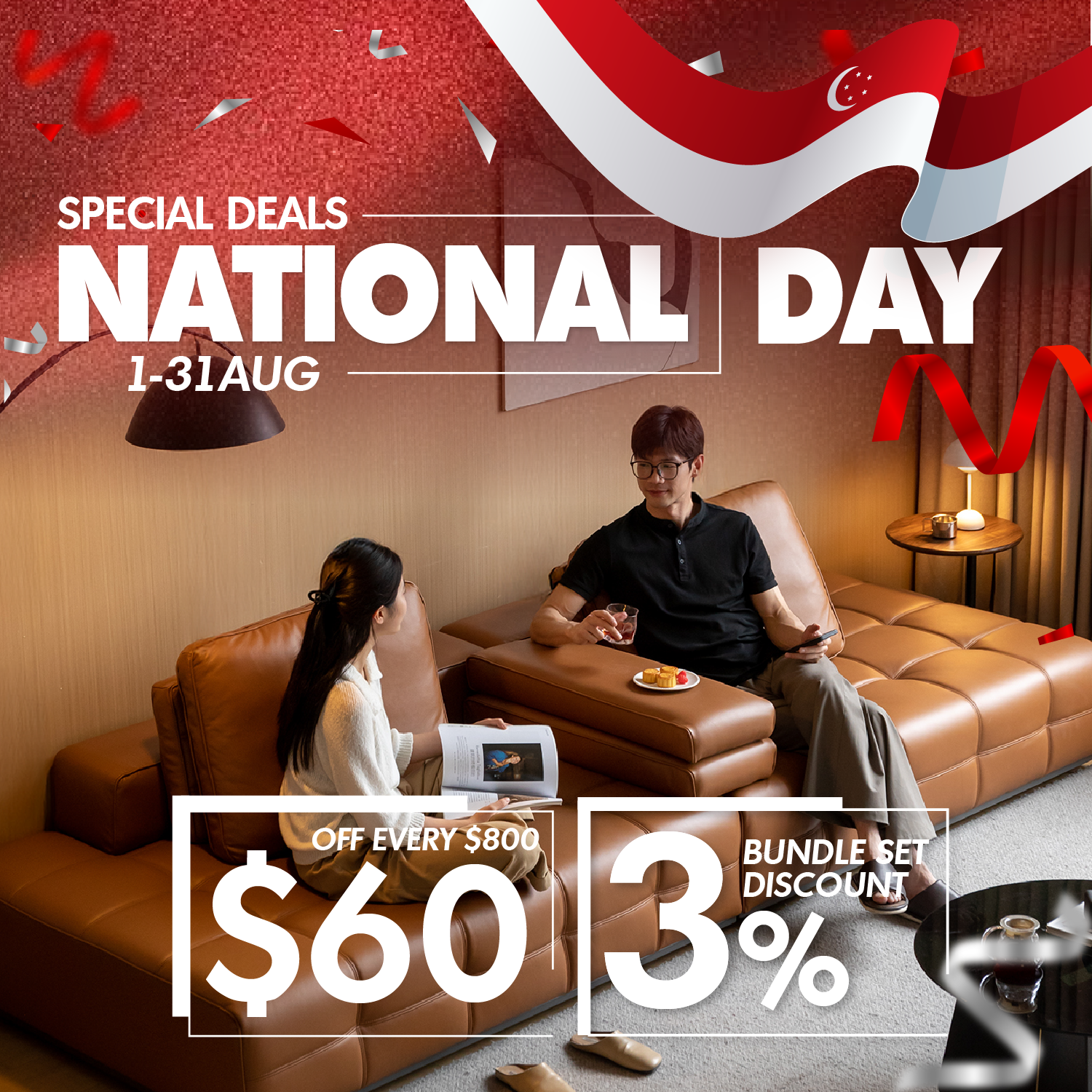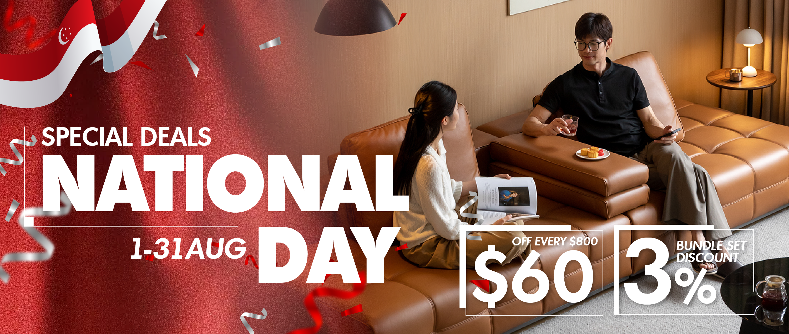 Upgrade your home during our National Day Furniture Sales and enjoy exclusive savings on quality furniture. Browse the collection today to secure stylish pieces at exceptional prices while stocks last.