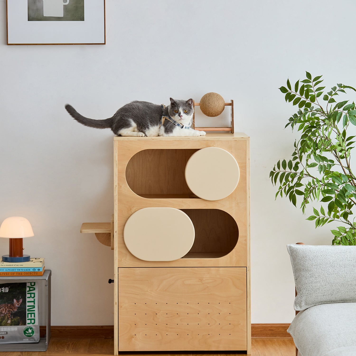 Minimalist Plywood Cat Tower Cabinet GULU creates a calm organised space for your cat with smooth access clean lines and smart storage that elevates any modern home