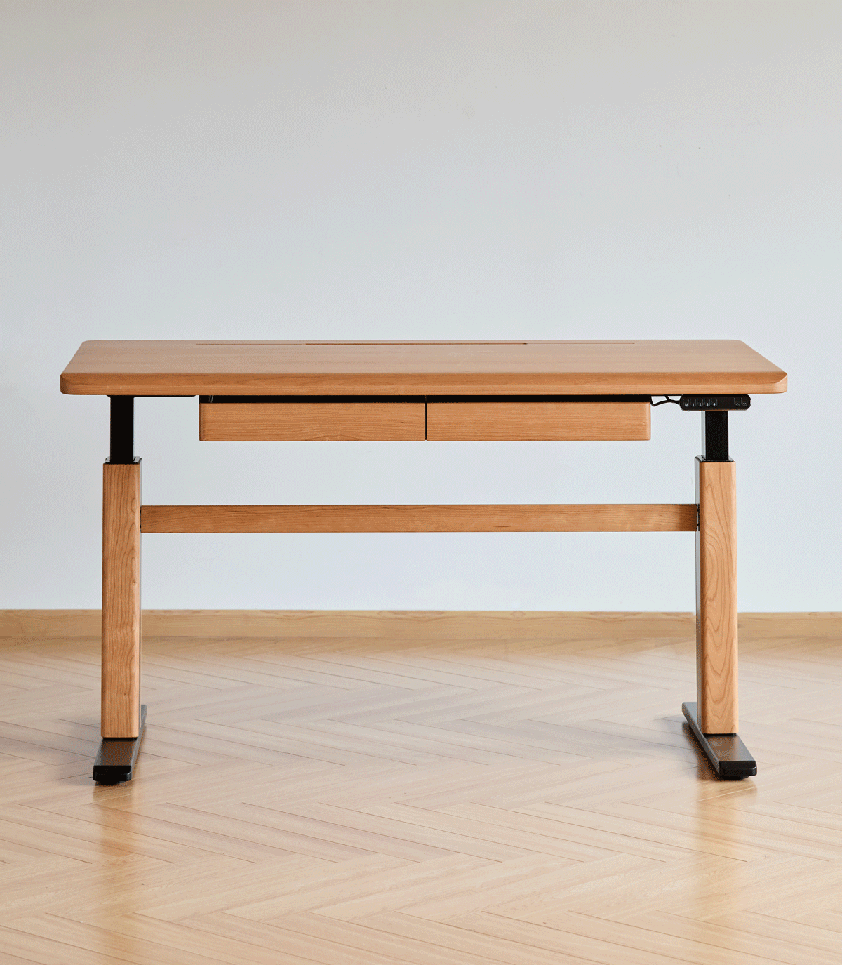 Scandinavian Cherry Wood Electric Height-Adjustable Study Table CLOUD LIFTING offers smooth dual-motor height control, quiet operation, and a warm cherry wood design for modern home study spaces.