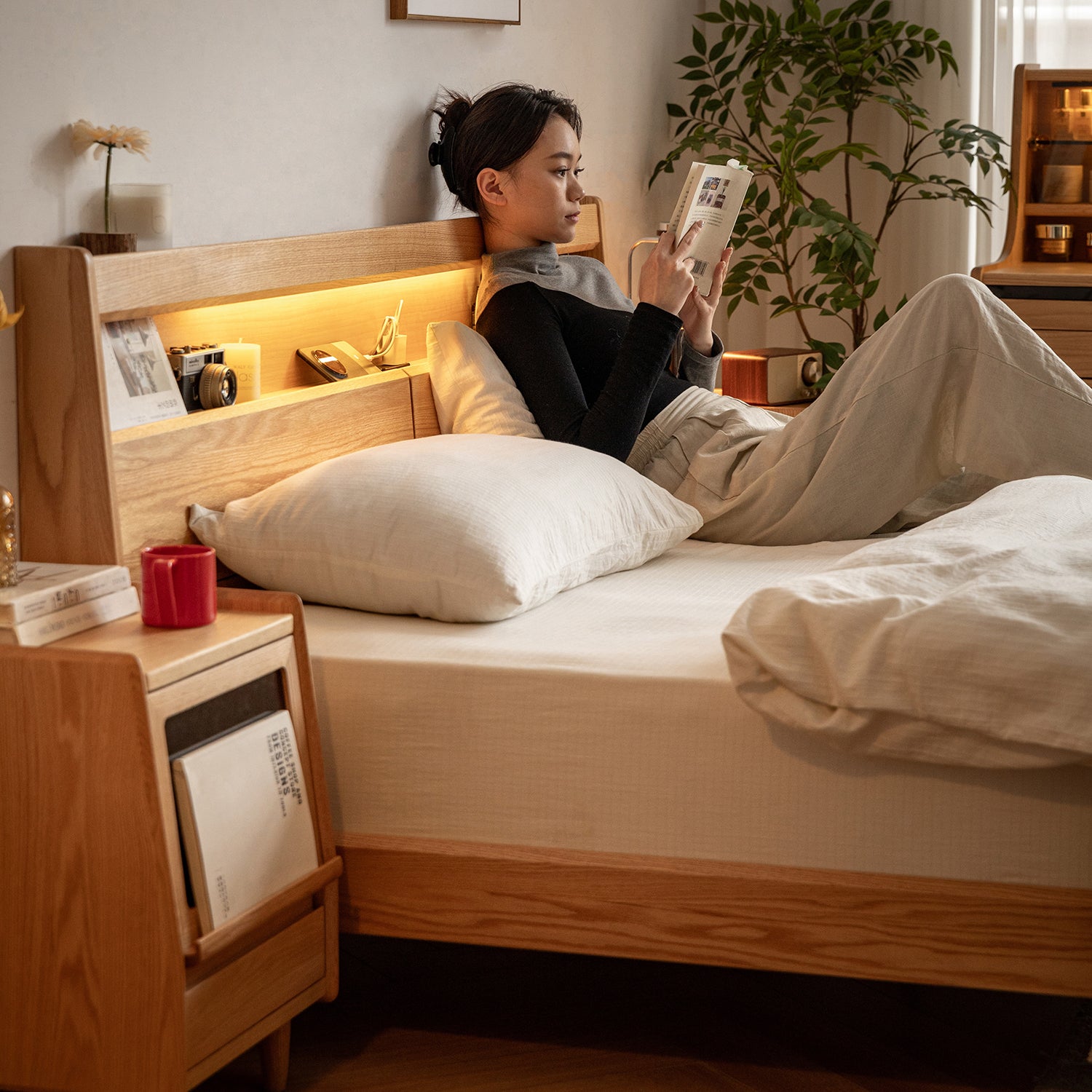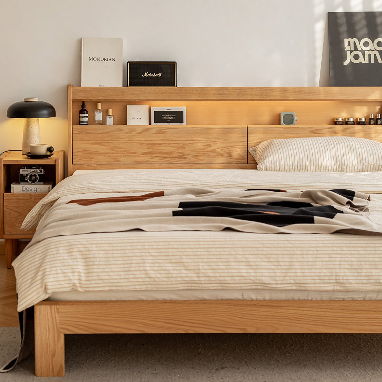 Scandinavian Oak Wood Bed ACCOMPANY LIGHT