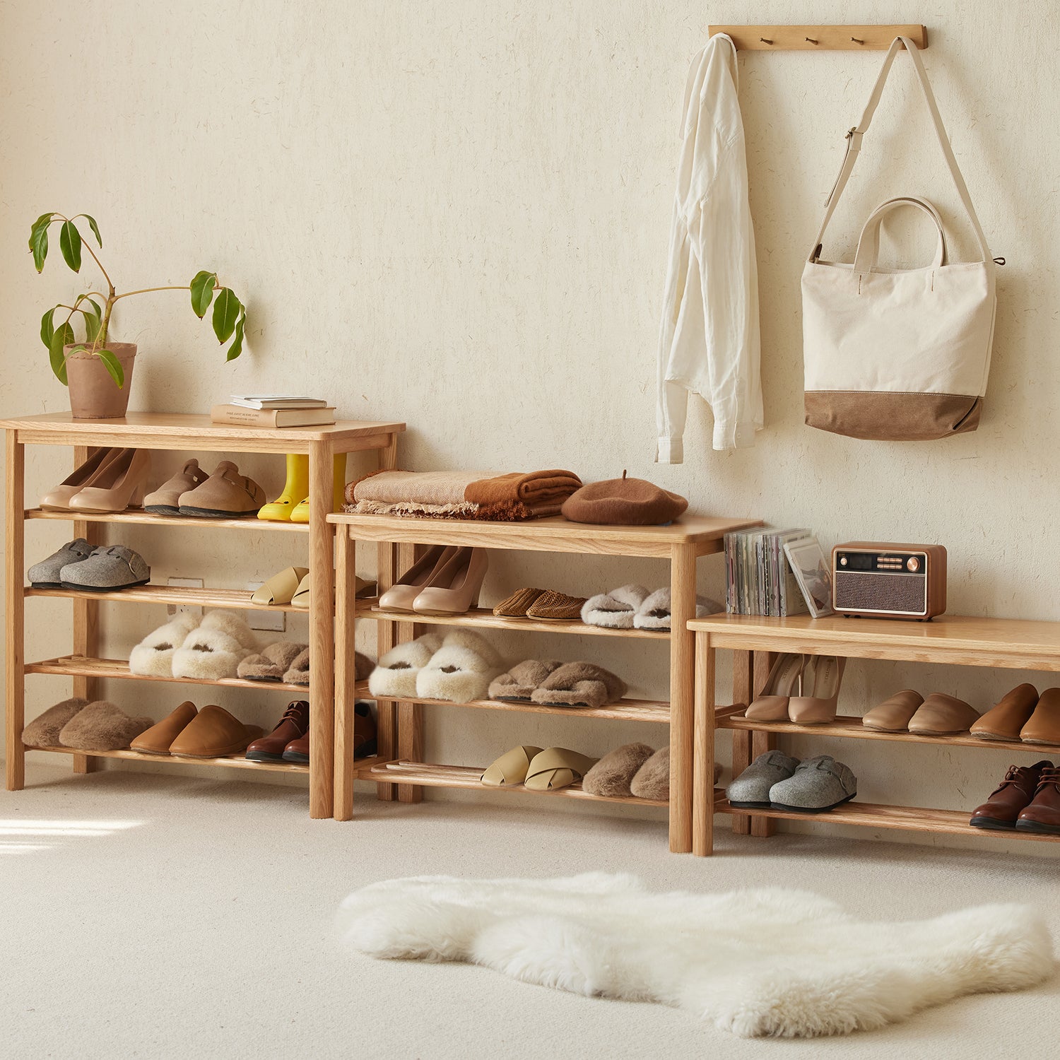 Scandinavian Oak Wood Shoe Shelf FUJI
