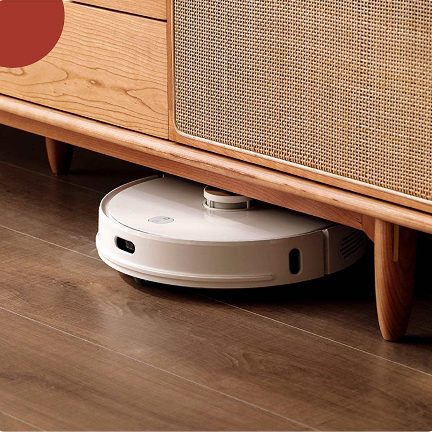 Scandinavian Cherry Wood Rattan TV Console RIVO blends solid cherry wood, breathable rattan panels, and spacious storage for stylish and organised living rooms.