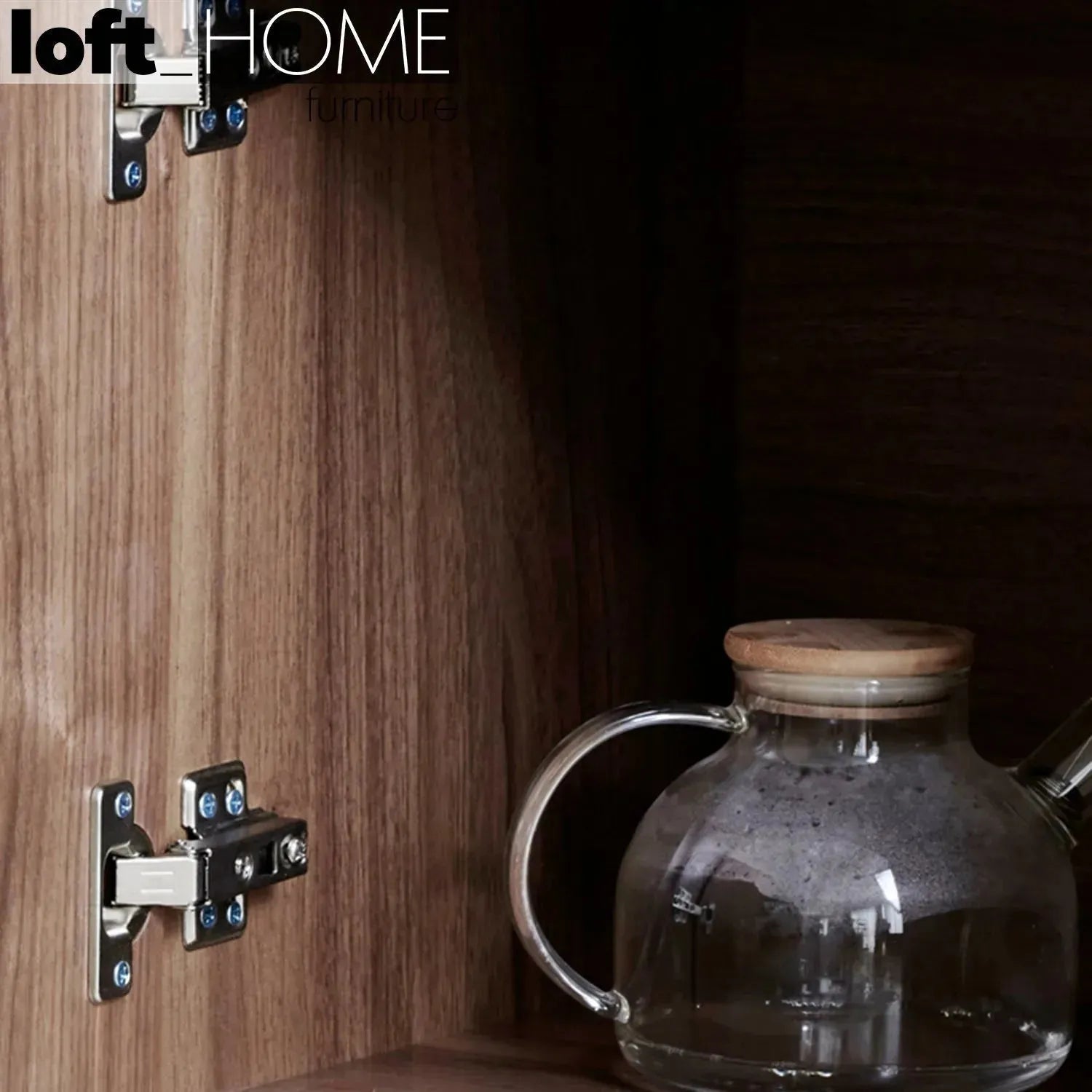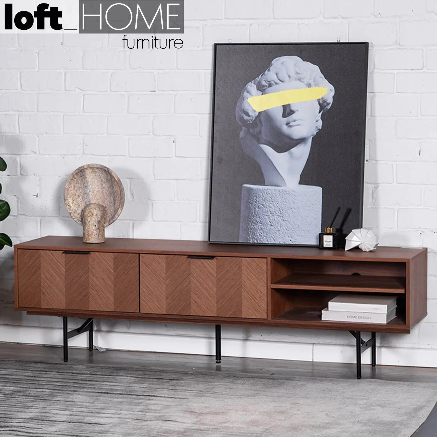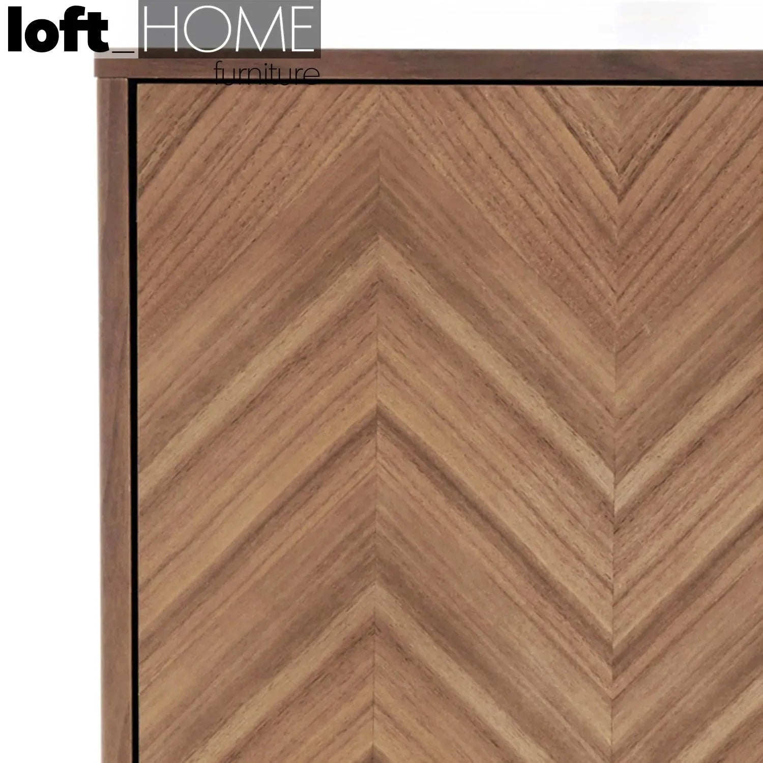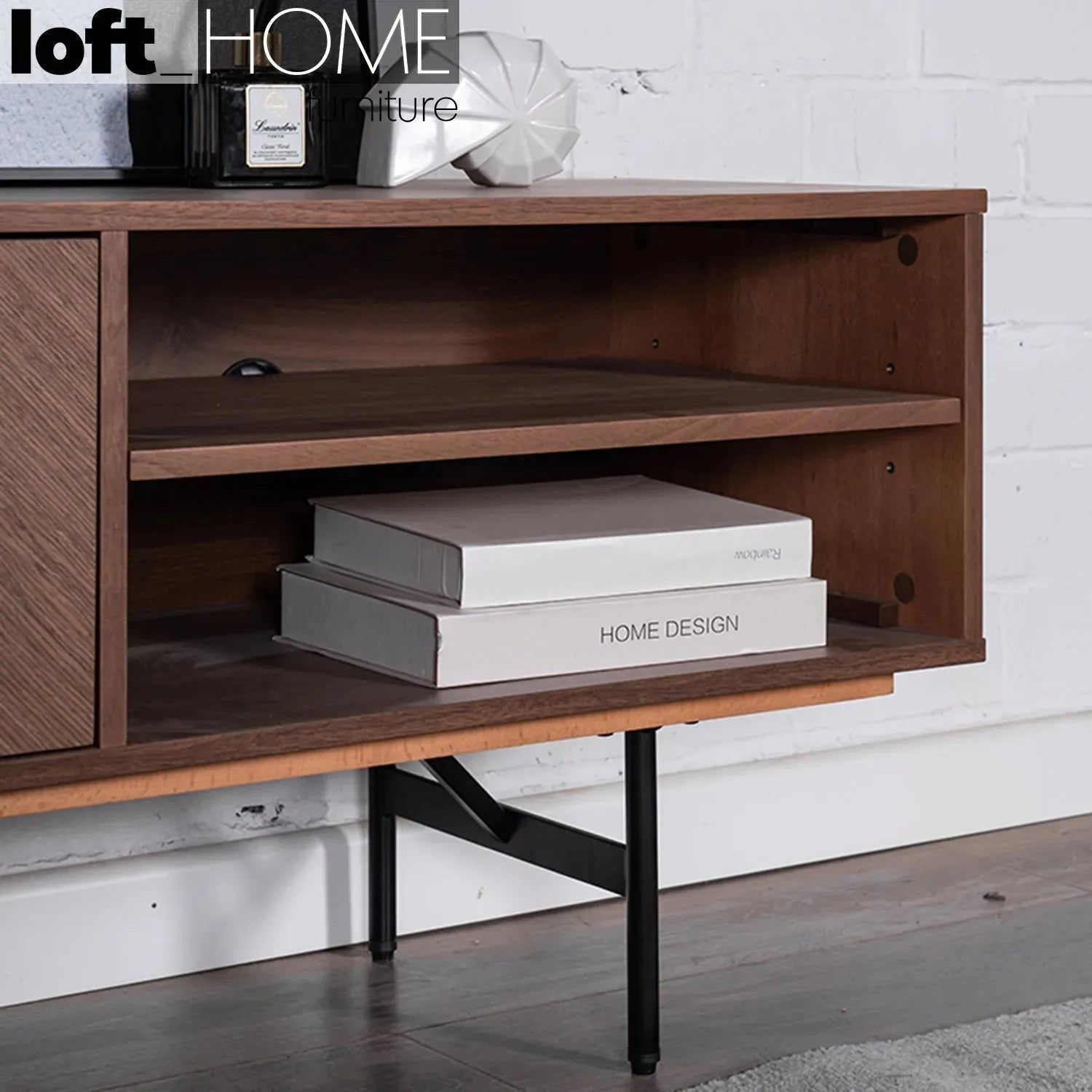 Material: Walnut veneer and Medium-density fibreboard (MDF) case with powder coated handles and cold rolled carbon steel legs.