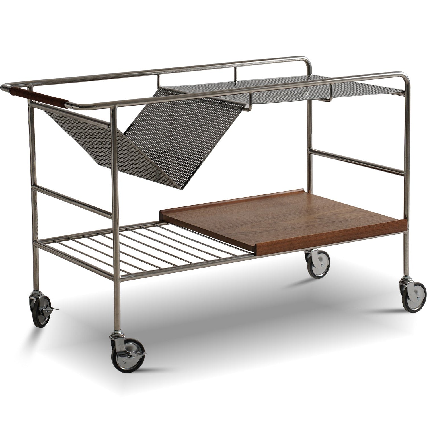 Industrial Steel Wheeled Trolley Side Table MANDA offers strong steel construction and effortless movement creating a stylish and practical accent for your space.