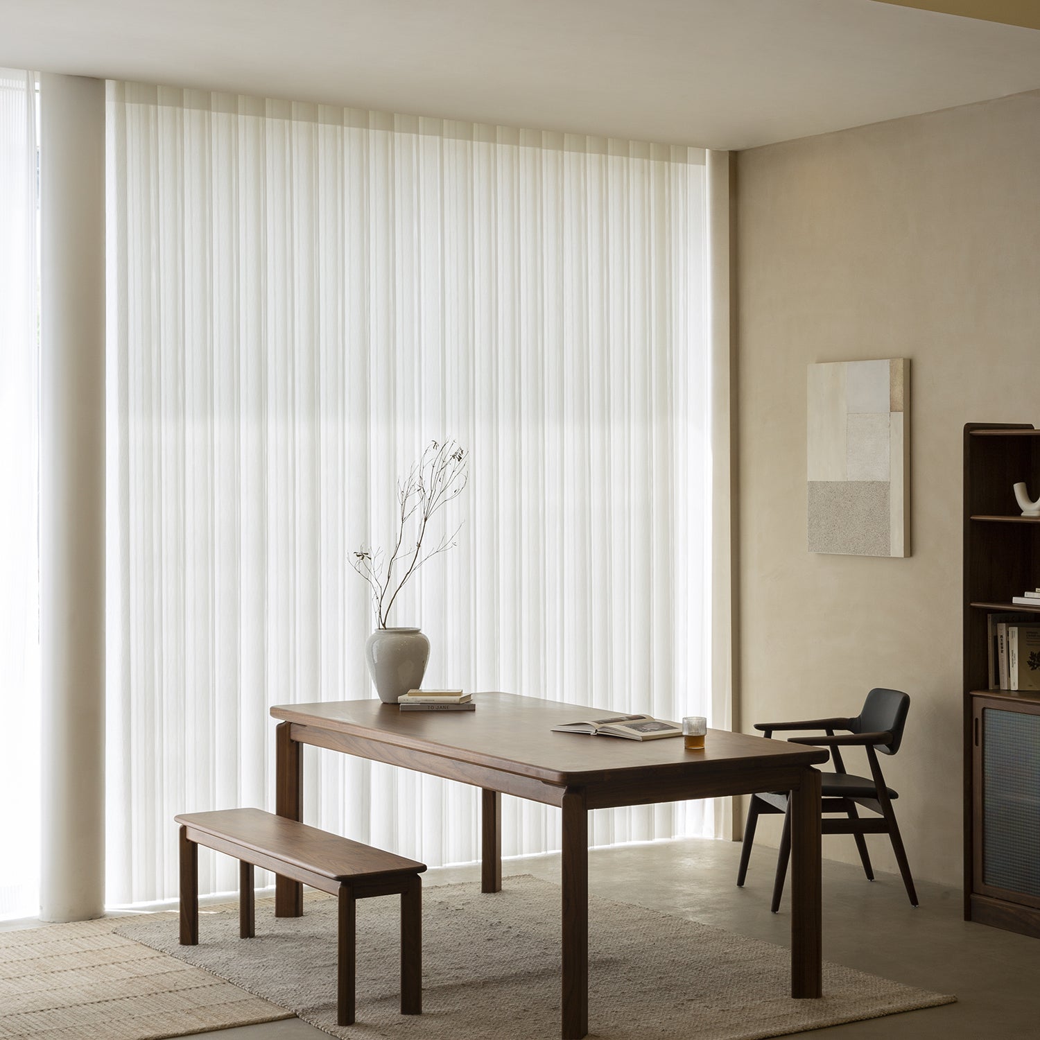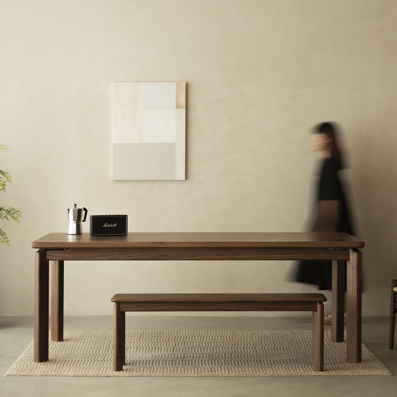 The wide seat surface offers a comfortable place to sit for one or more people making shared meals and relaxed moments feel easy and enjoyable