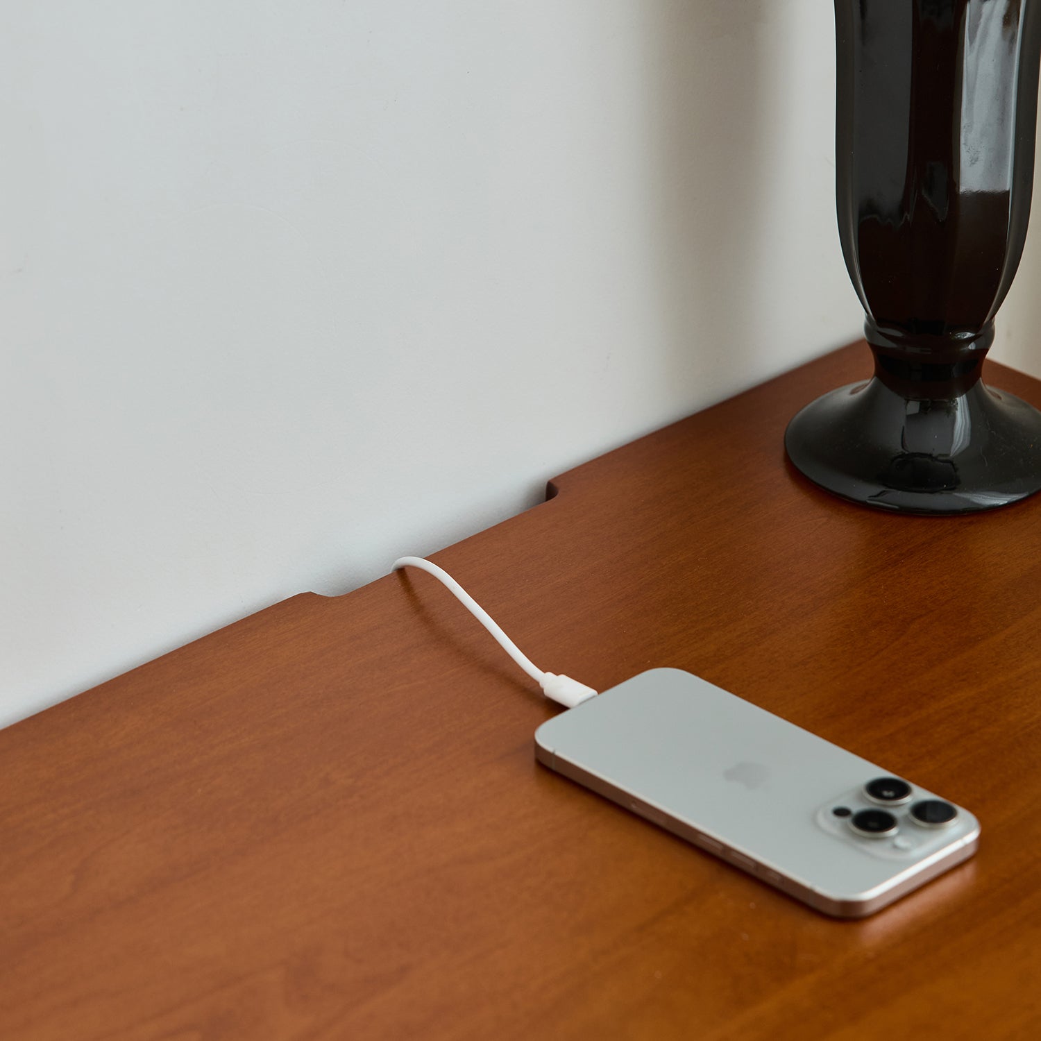 Felt pads underneath protect flooring, while a reserved cable hole keeps wires hidden for a clean and uncluttered tabletop.
