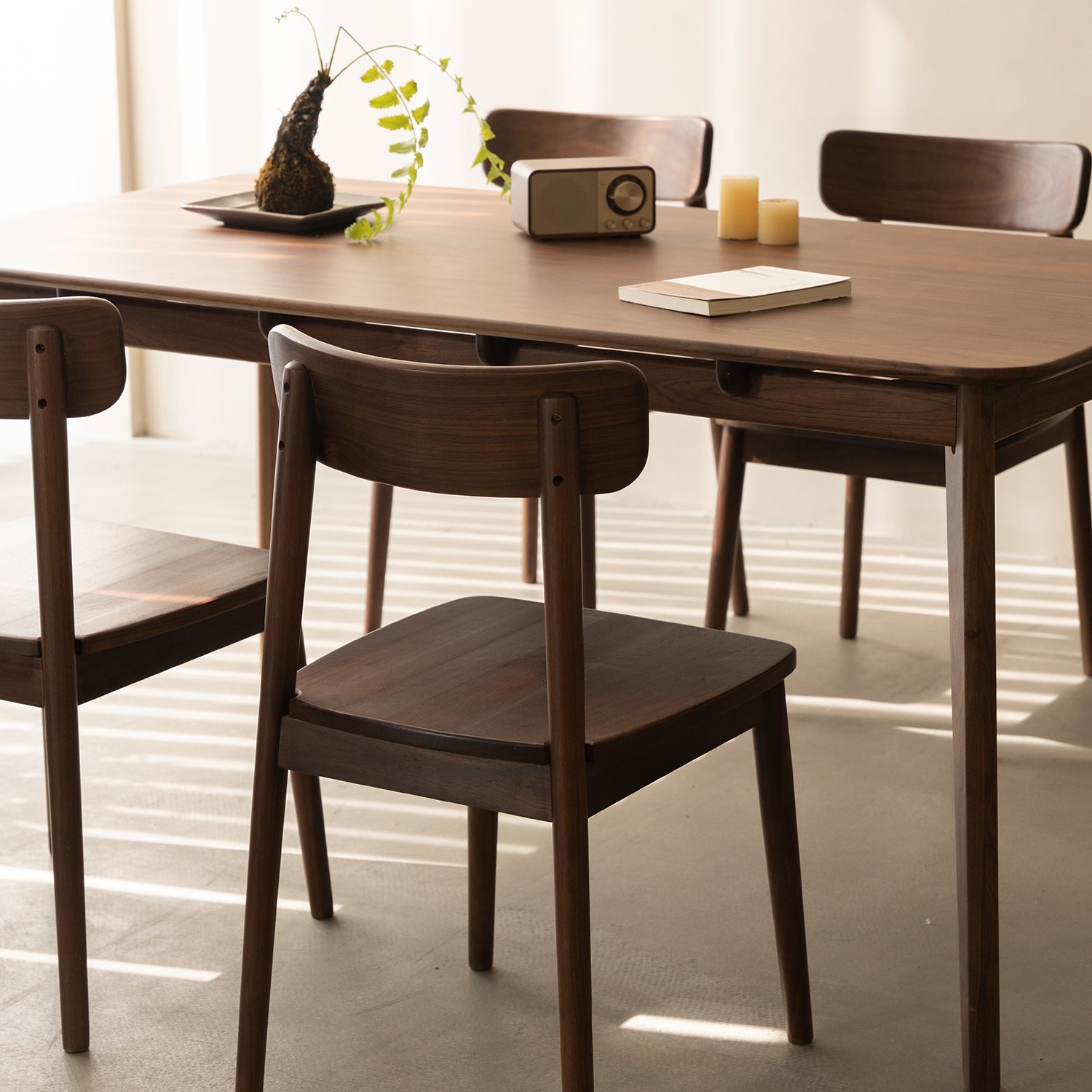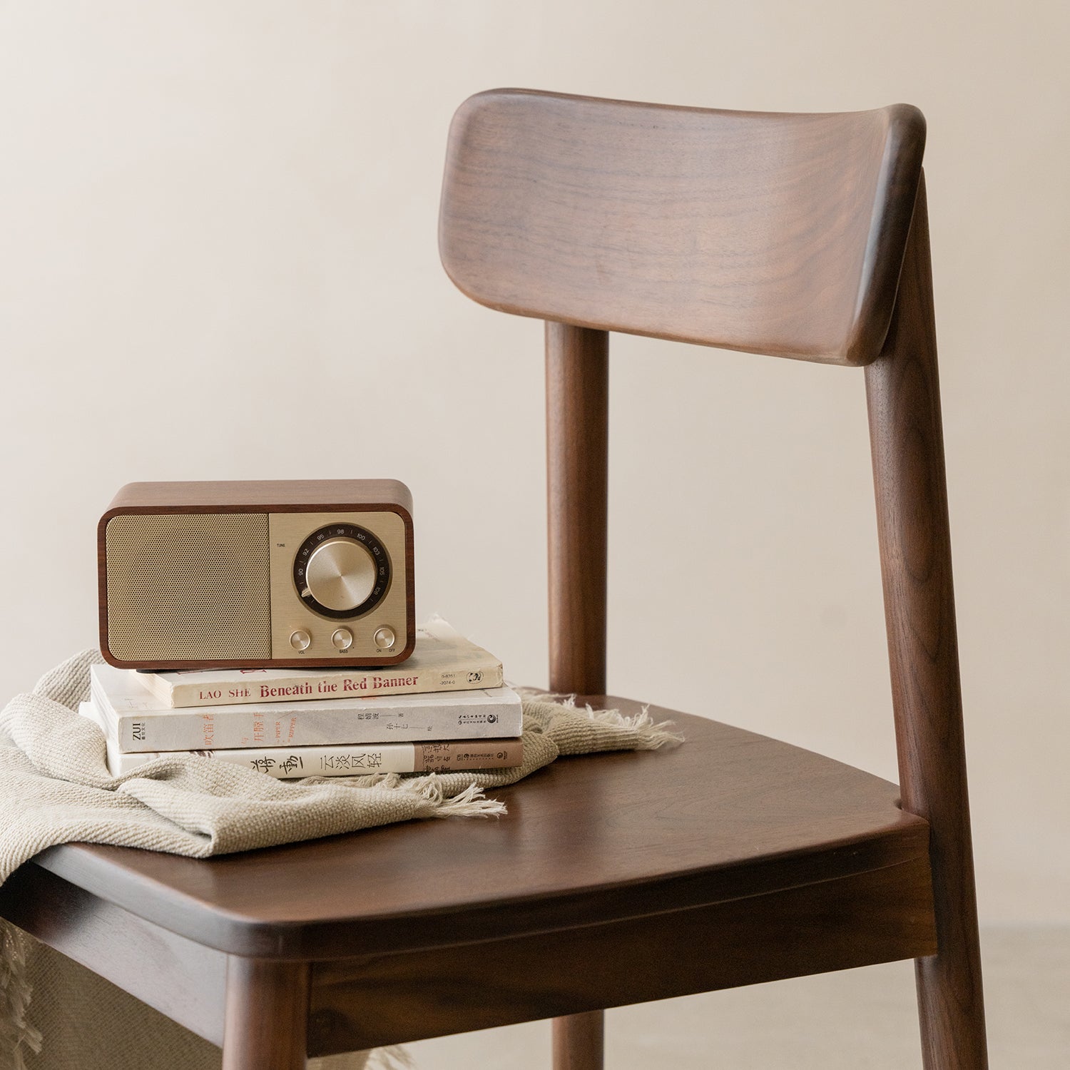 Vintage Walnut Wood Dining Chair GREEN offers timeless walnut craftsmanship and a comfy curved backrest, turning any meal into a cozy, elegant experience.