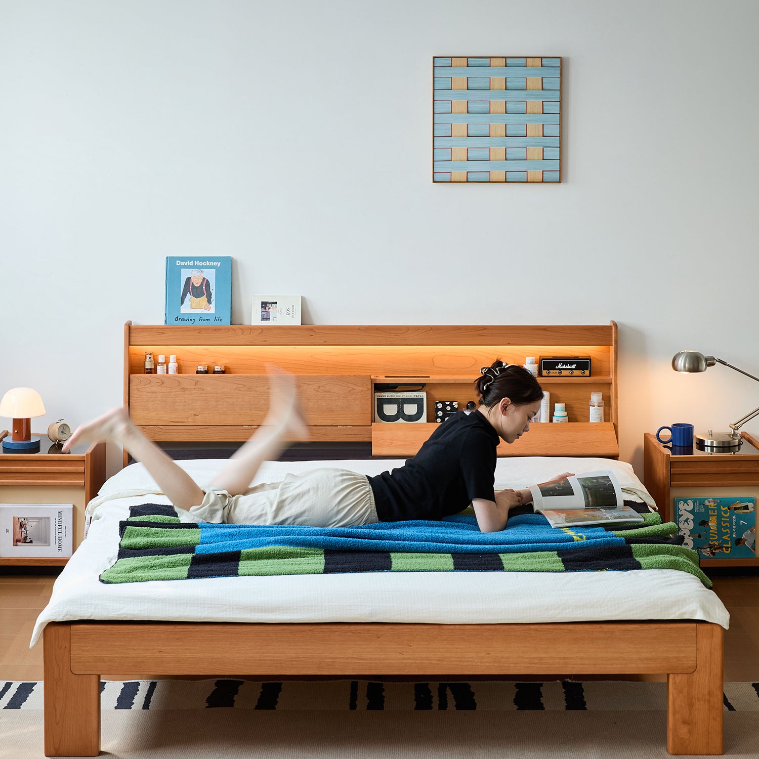 Scandinavian Cherry Wood Bed ACCOMPANY LIGHT
