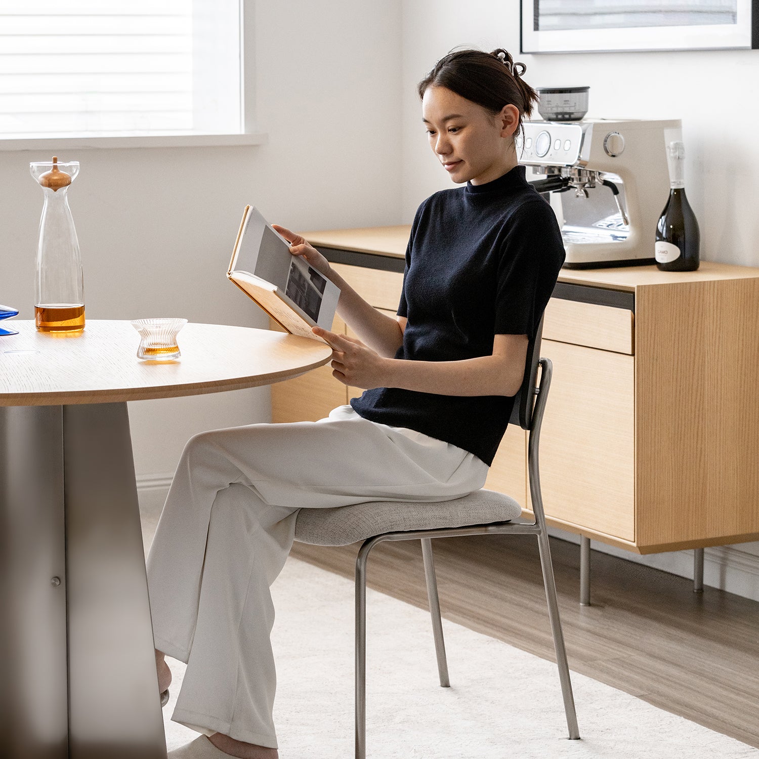 The gently curved backrest supports the natural shape of your spine, offering comfortable seating for everyday dining and long conversations.