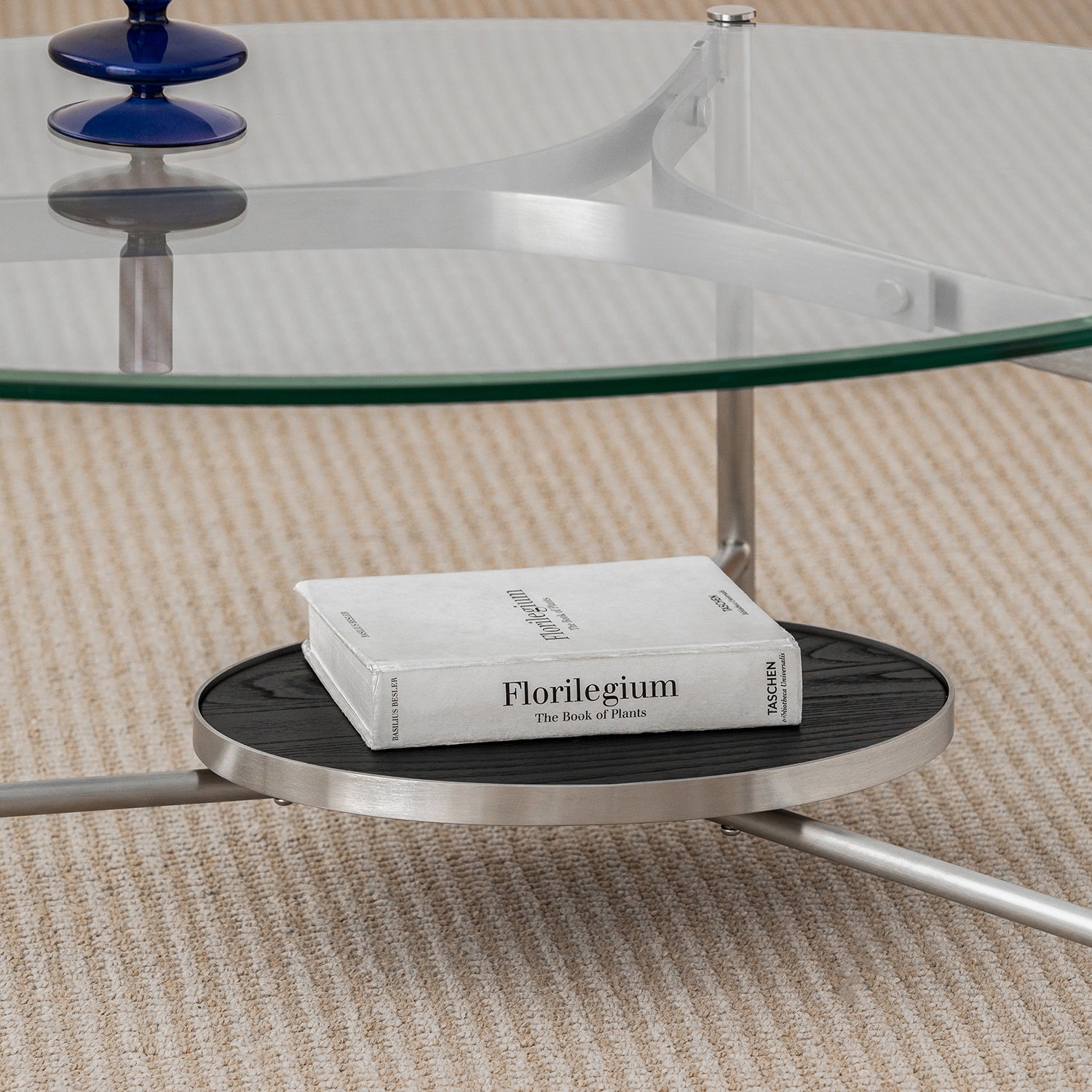 Minimalist Tempered Glass Coffee Table ICELAND combines clear tempered glass, a stable stainless steel frame, and smart lower storage to create a light, modern, and refined living space.