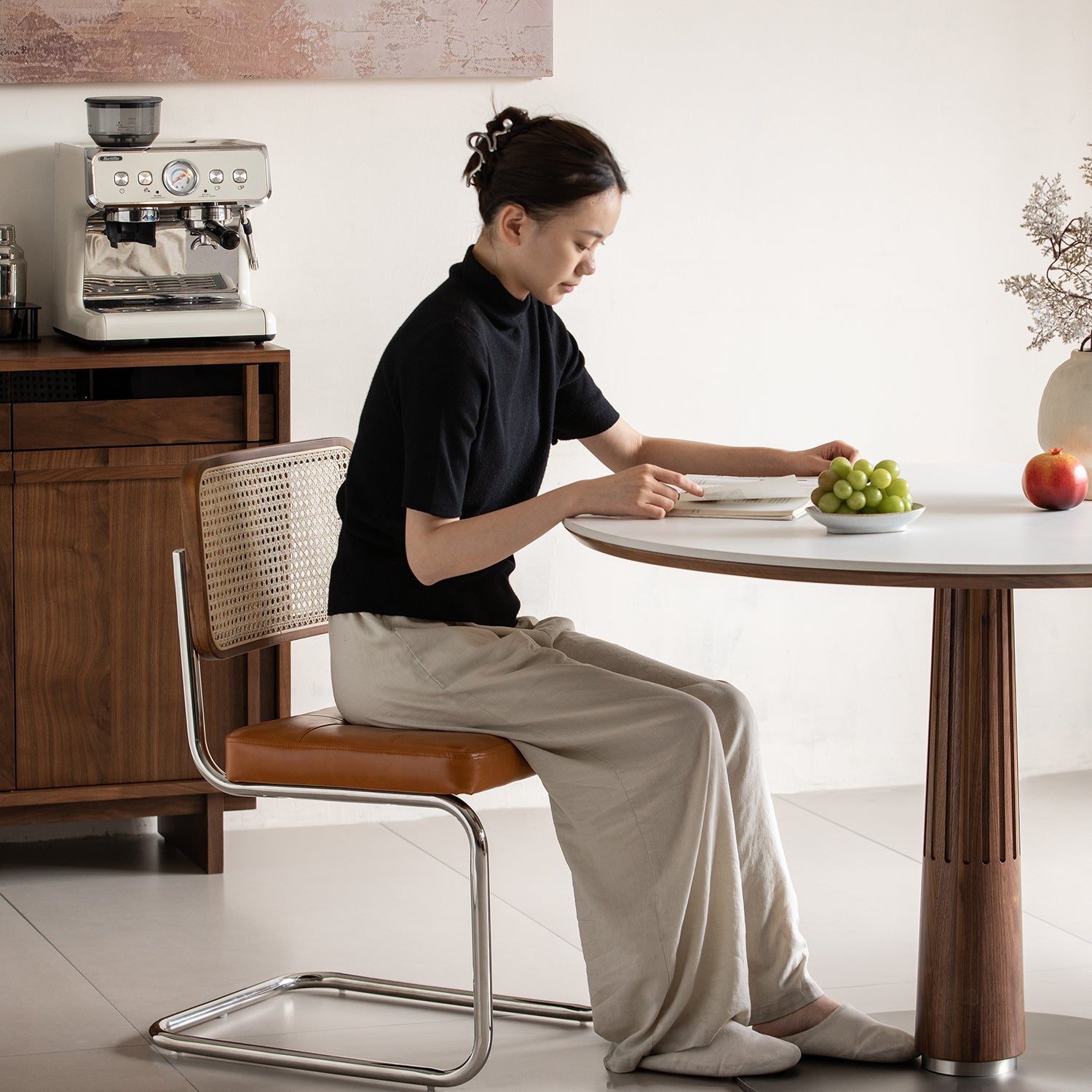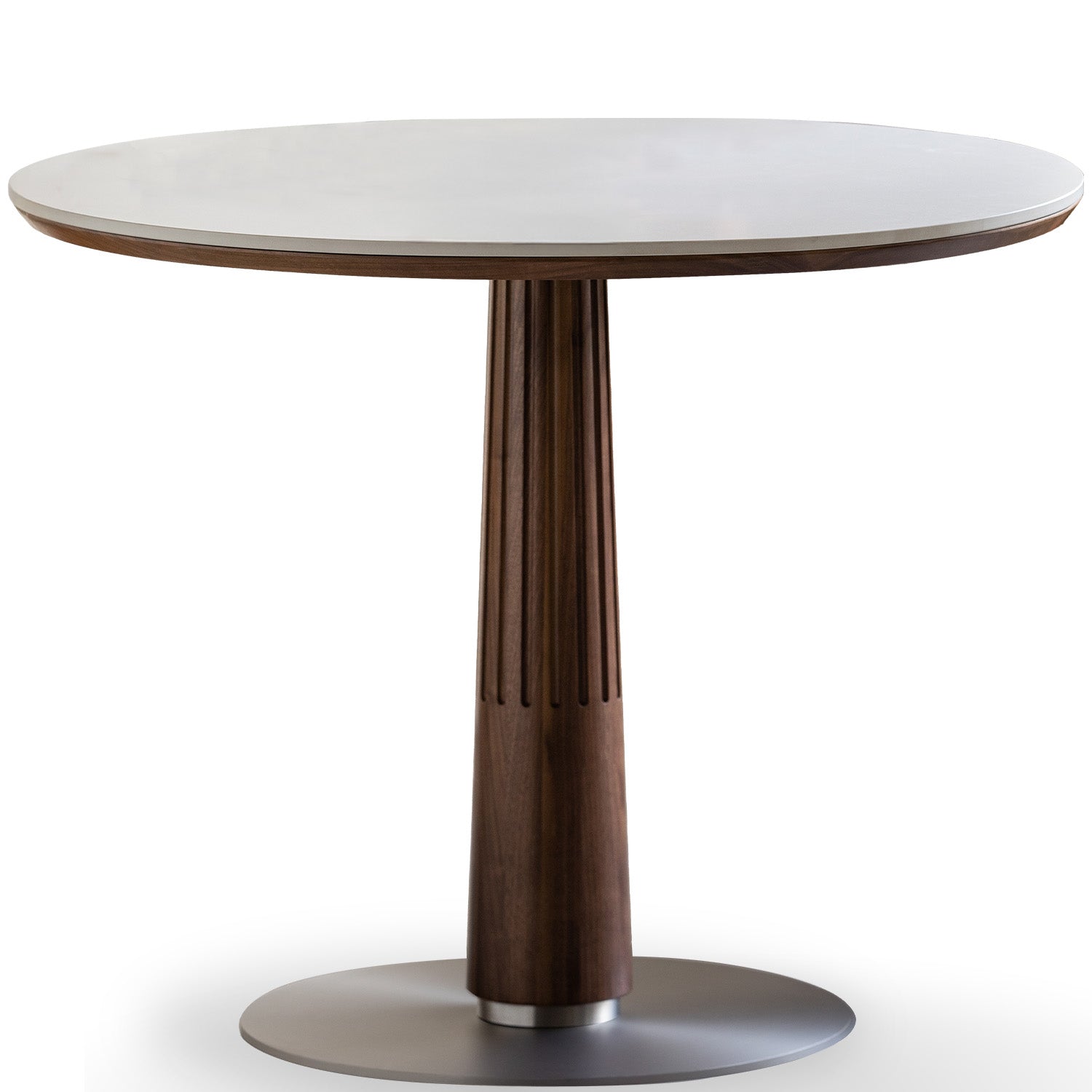 Japandi Walnut Wood Sintered Stone Round Dining Table GREY