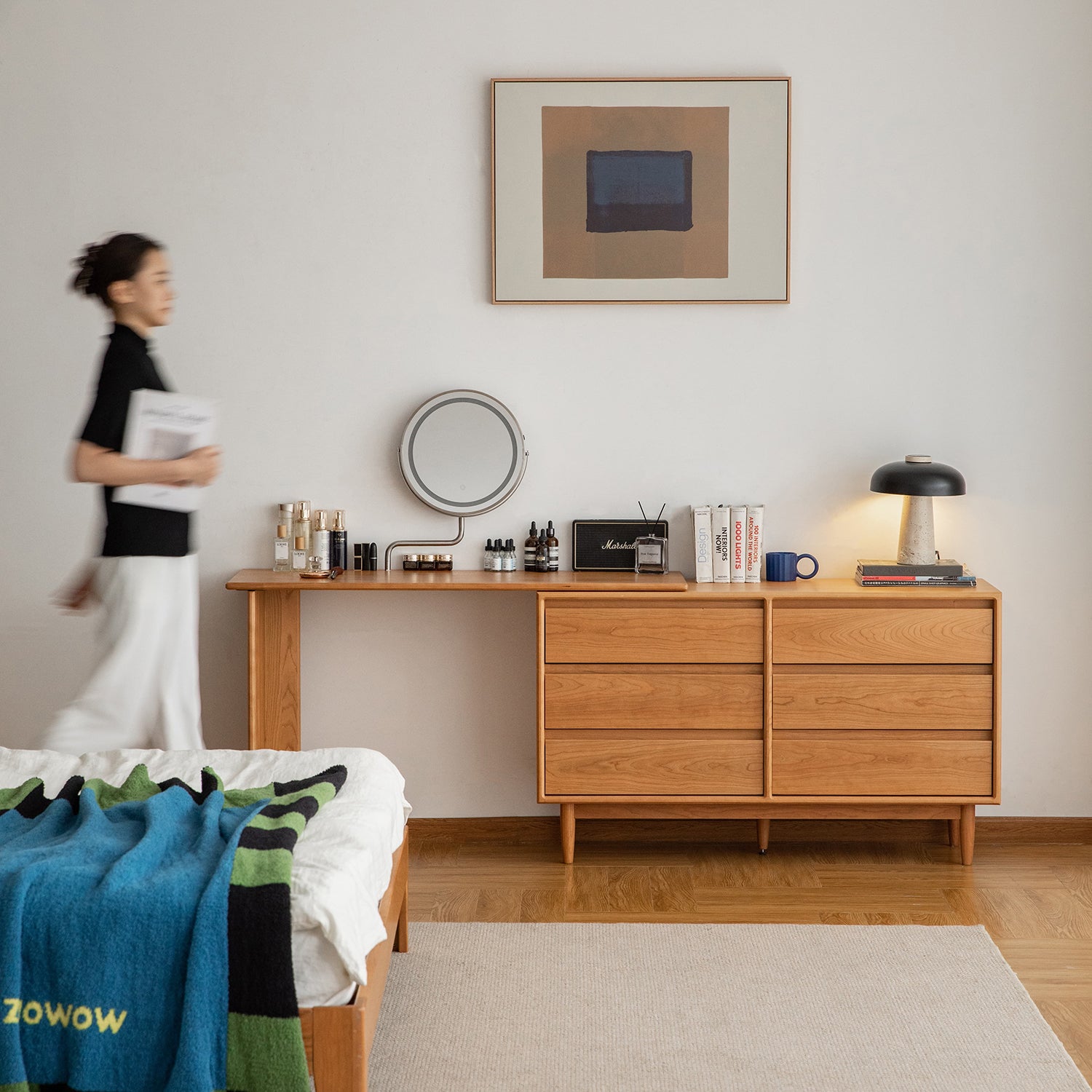 Scandinavian Cherry Wood Dressing Table VISTA pairs warm solid cherry wood with clever storage and a flexible mirror, creating an elegant and practical vanity for modern bedrooms.