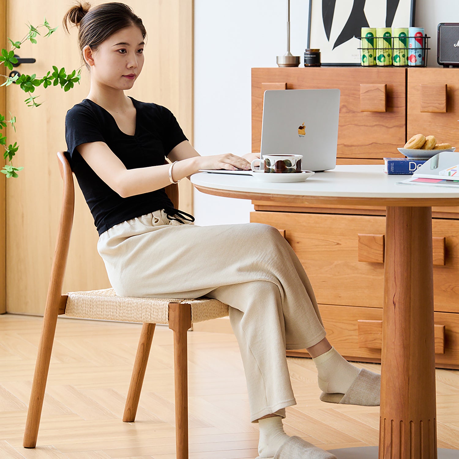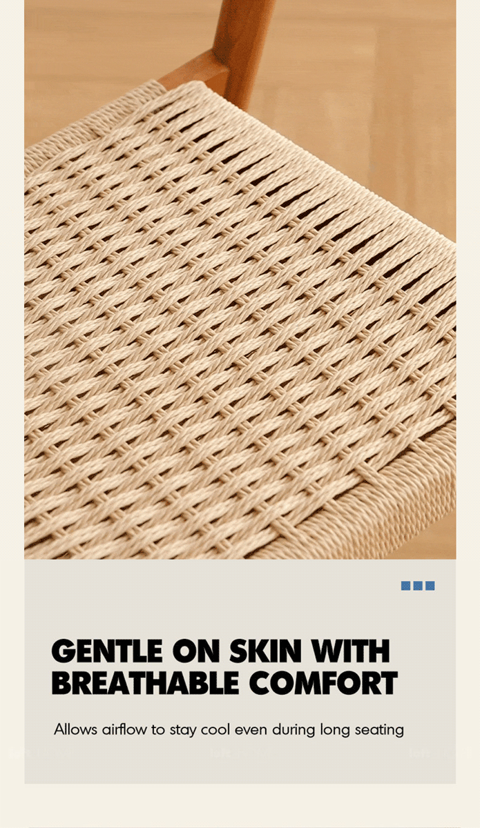 Handwoven rope seat offers breathable comfort and gentle support, keeping seating comfortable even during long meals. |
