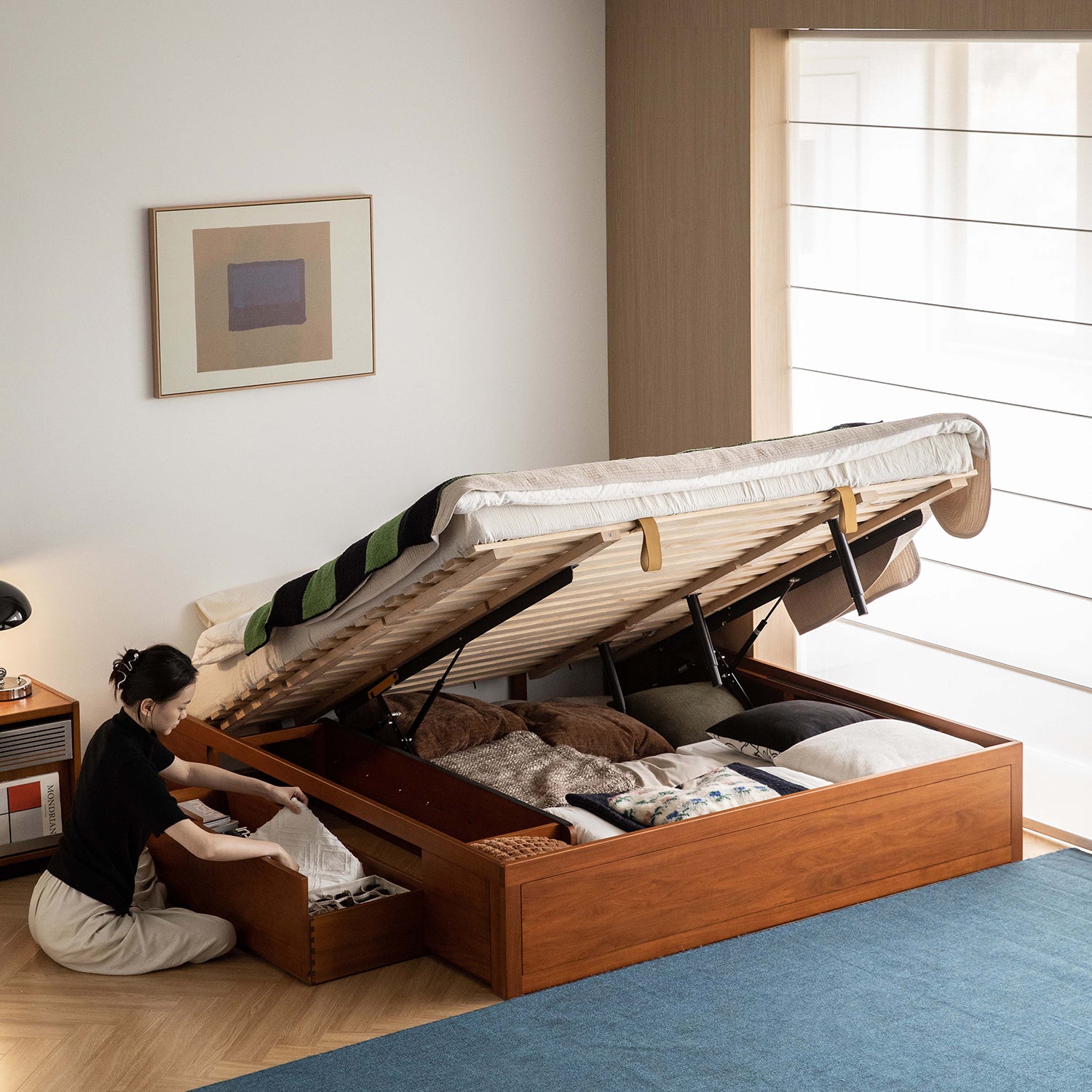 Experience timeless craftsmanship with the Vintage Boxwood Lift-Up Storage Platform Bed With Drawer KANGAROO, blending natural beauty, hidden storage, and lasting comfort.