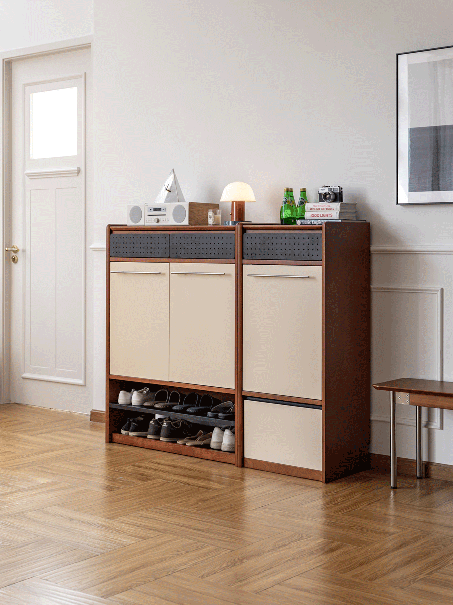 Vintage Boxwood Modular Shoe Cabinet MIES offers flexible modular storage with solid wood craftsmanship, smart ventilation, and a timeless design that keeps shoes organised and fresh.