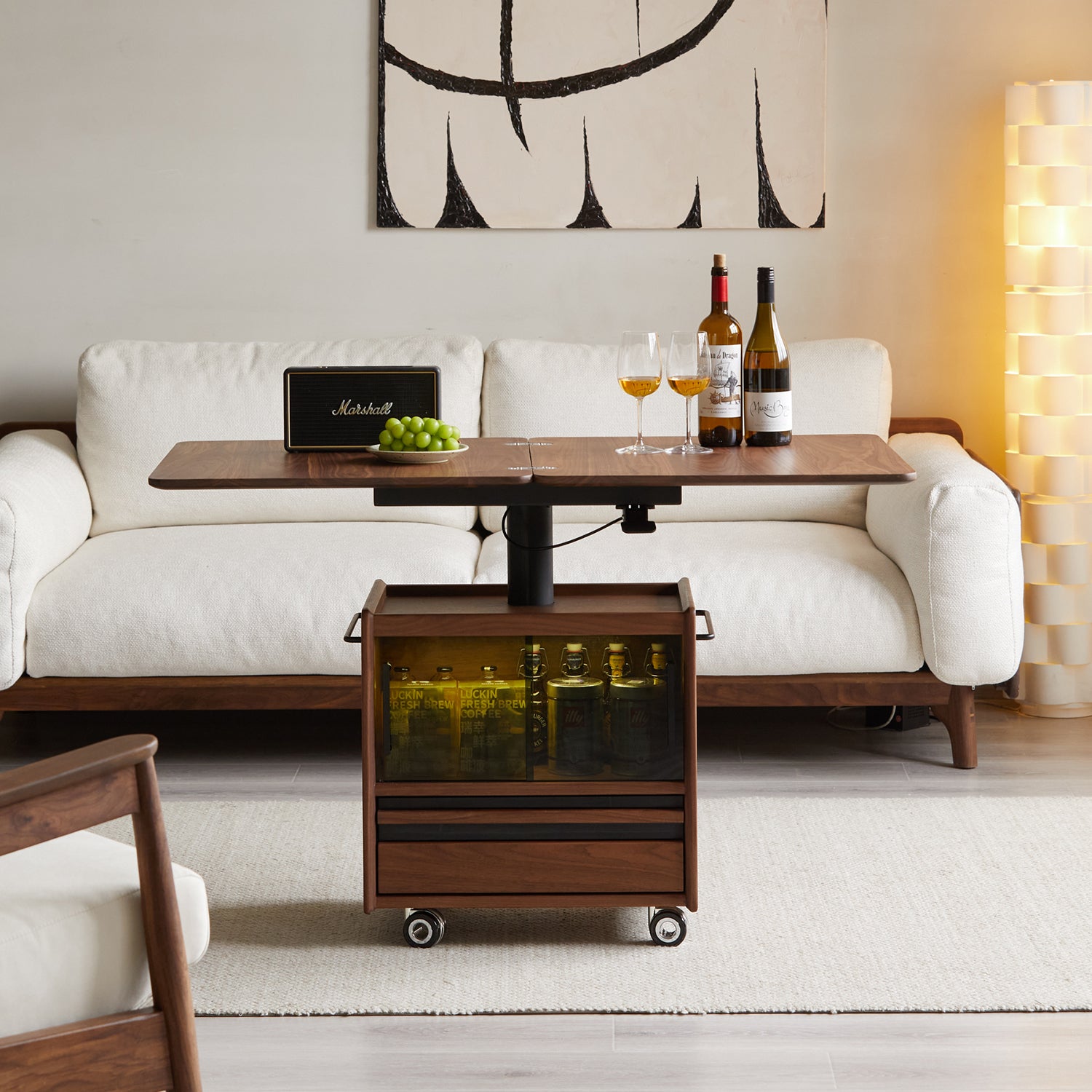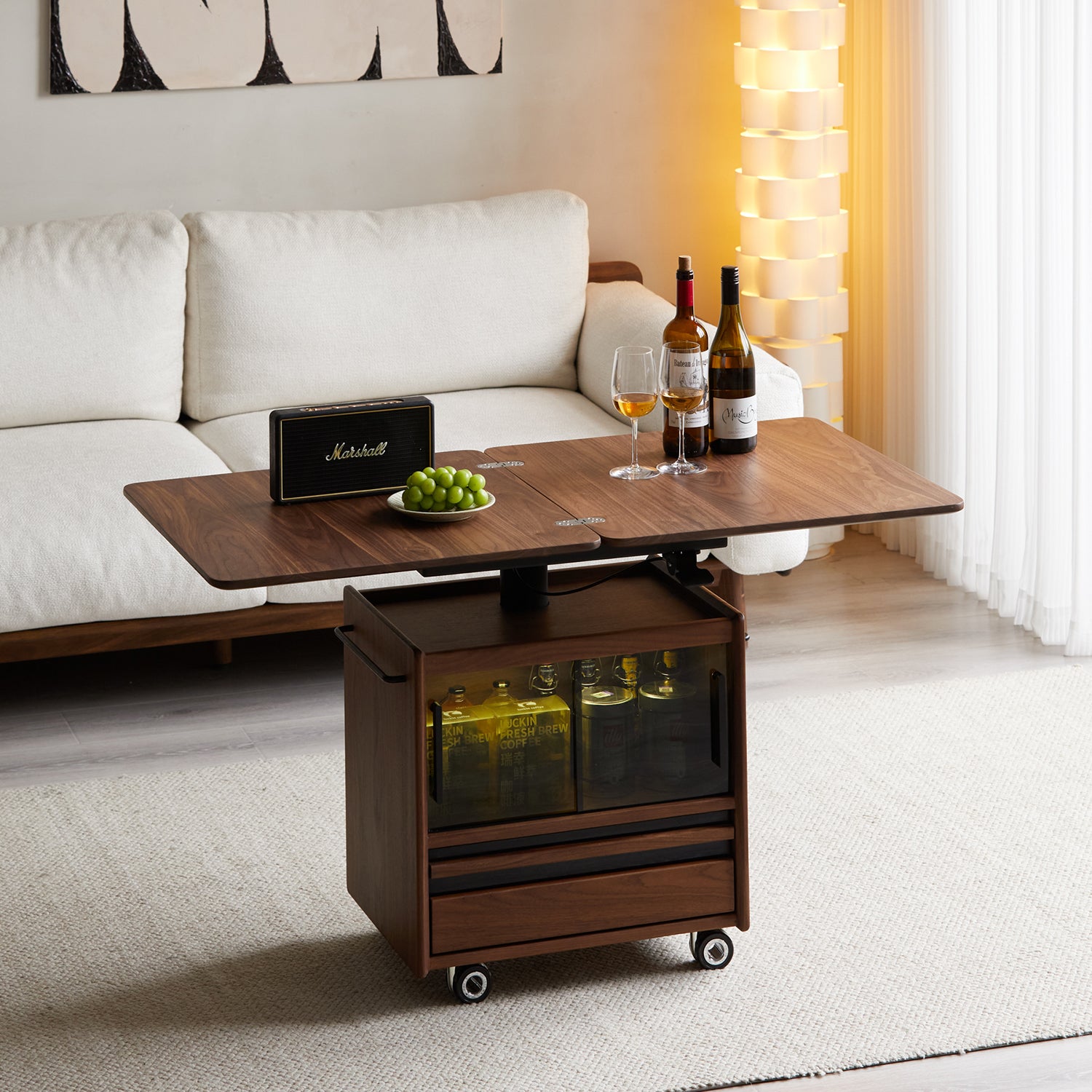 Experience the versatility of the Vintage Walnut Wood Extendable Height Adjustable Coffee Table, designed to elevate small spaces with style, comfort, and innovative functionality.